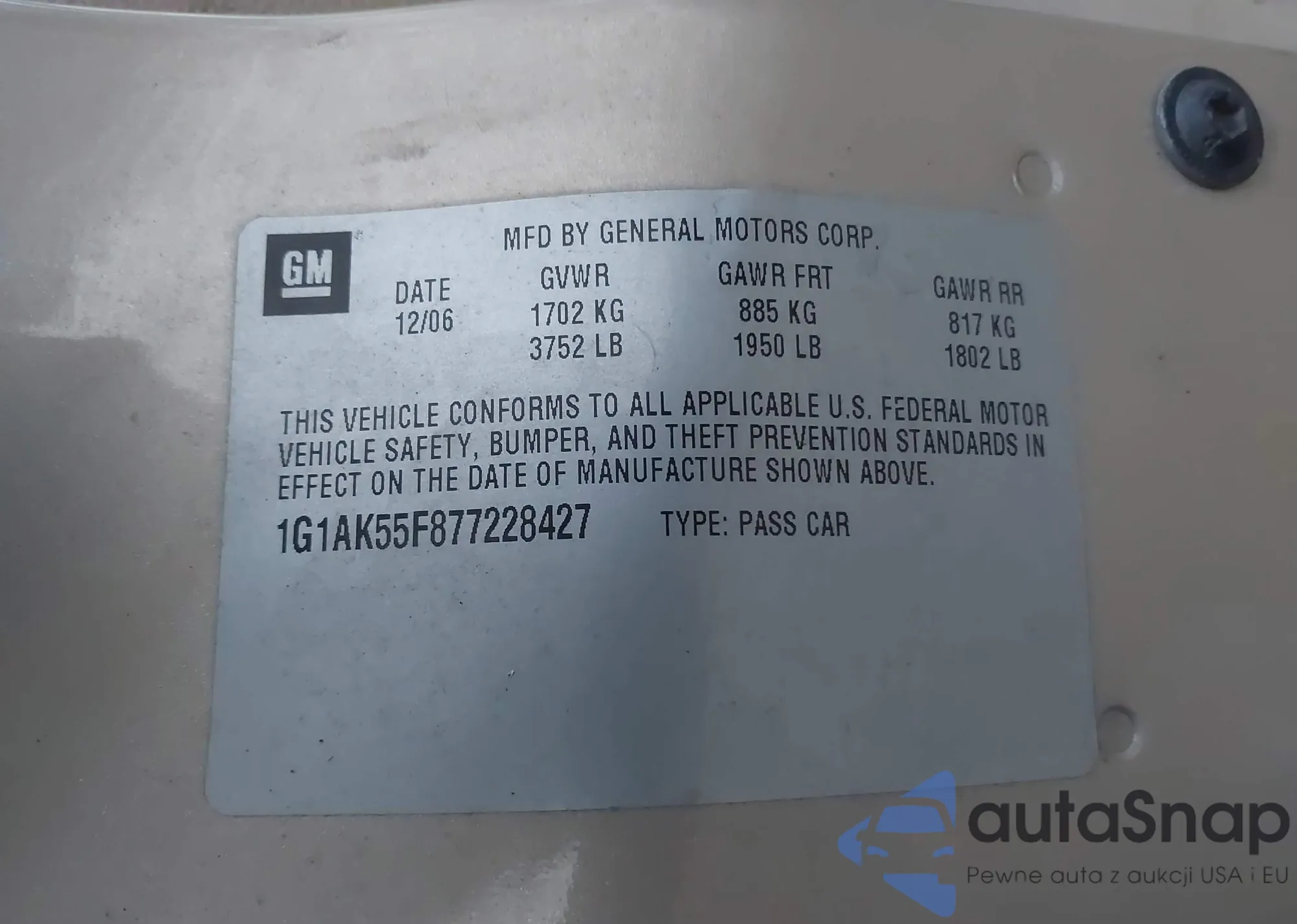 • VIN 1G1AK55F877228427