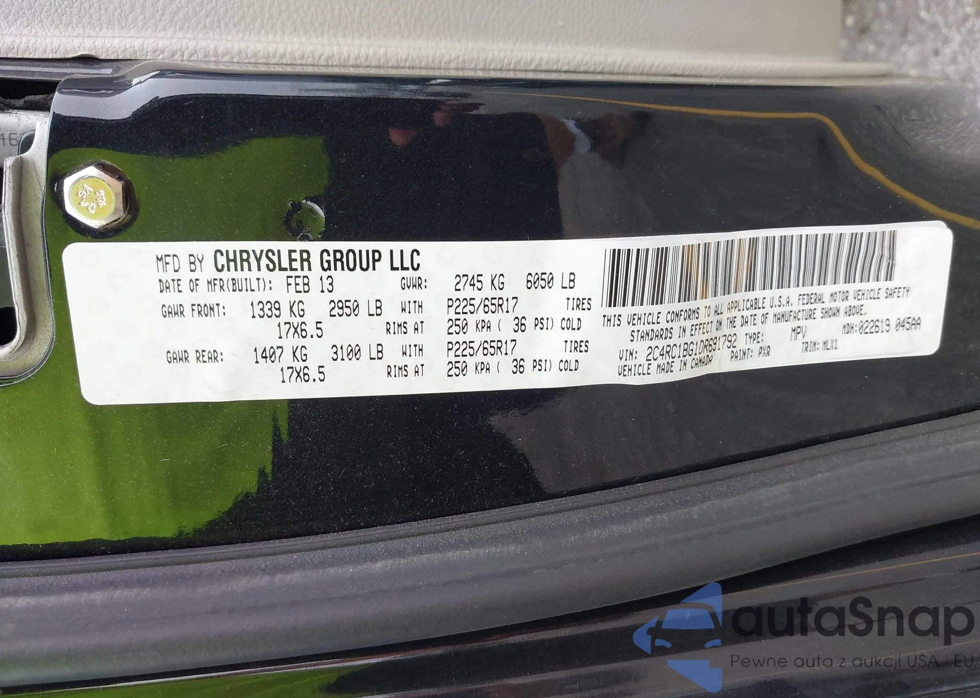 • VIN 2C4RC1BG1DR691792
