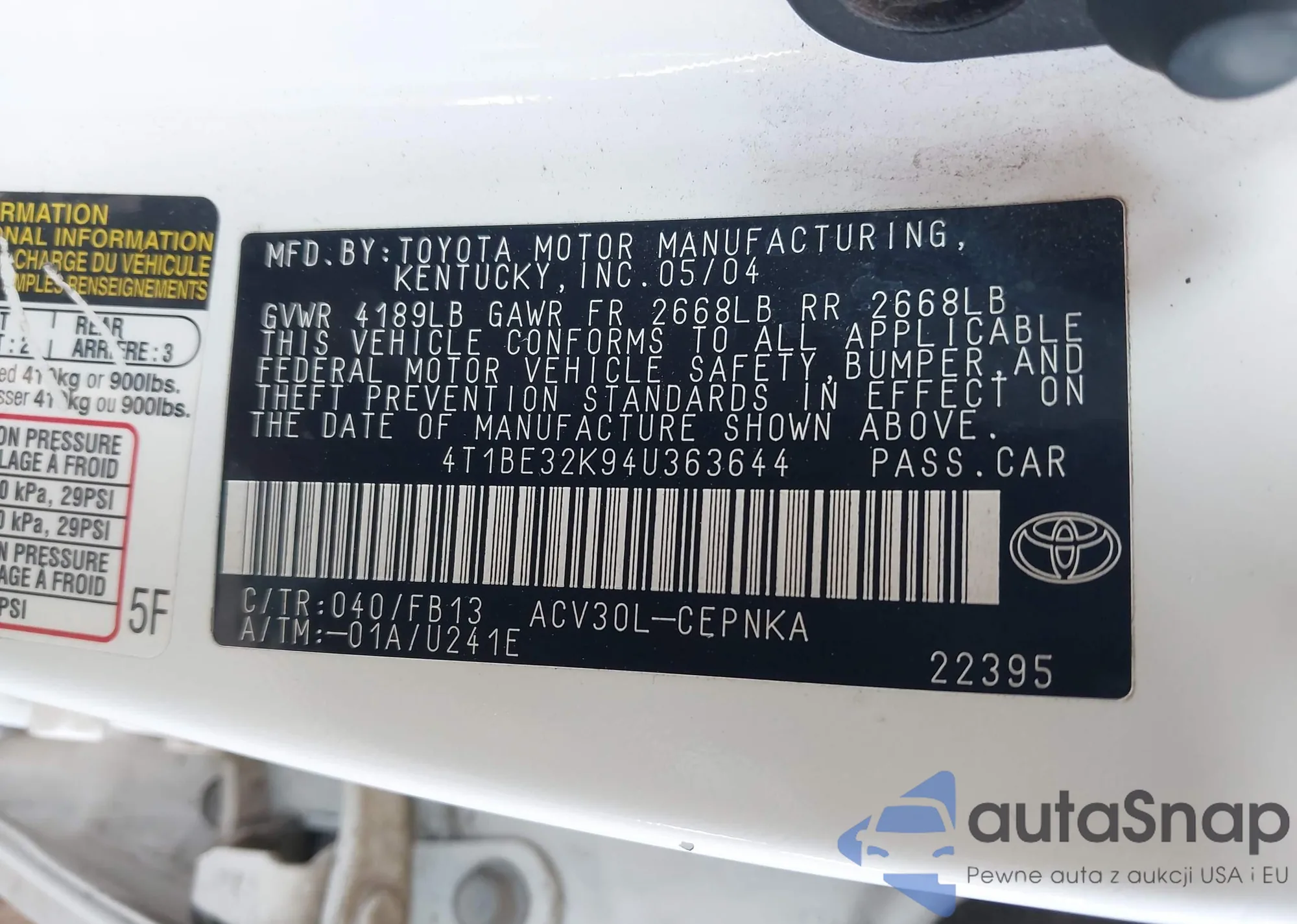 • VIN 4T1BE32K94U363644