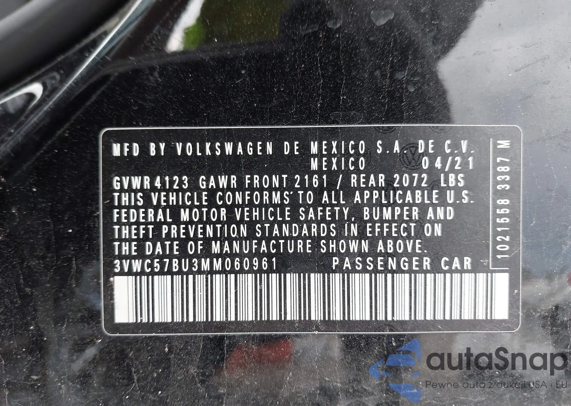 • VIN 3VWC57BU3MM060961