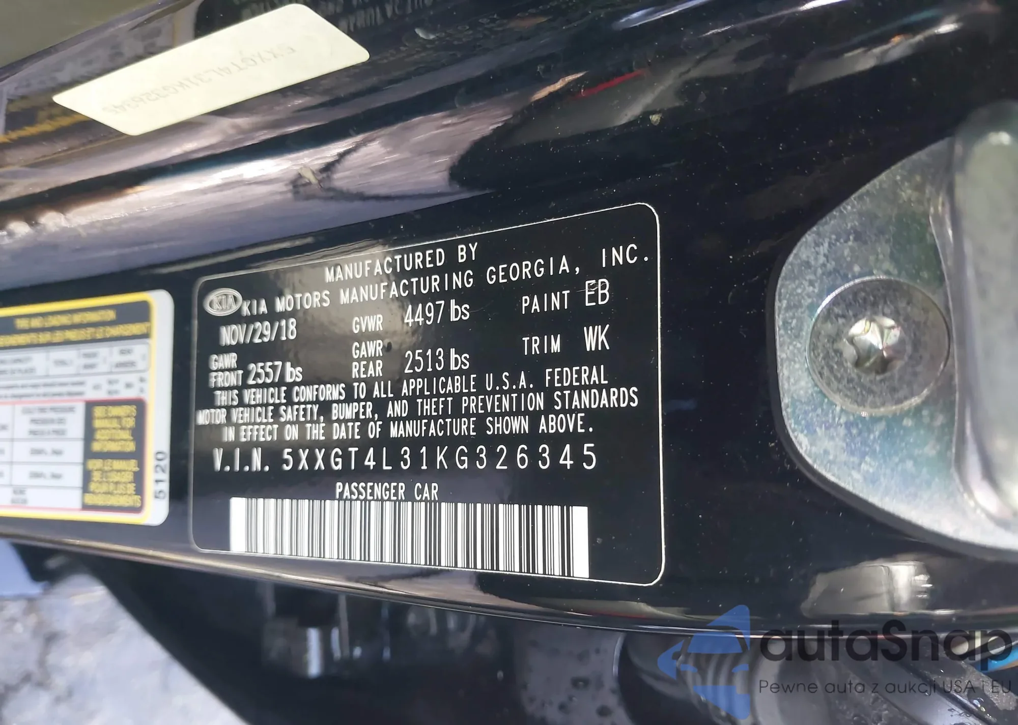 • VIN 5XXGT4L31KG326345