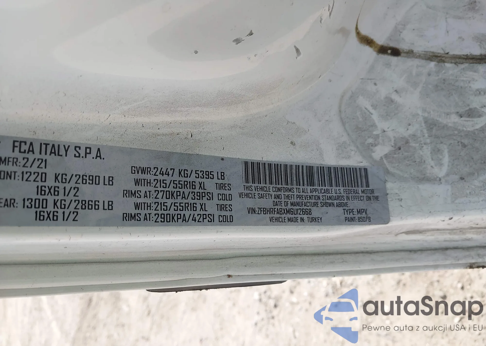 • VIN ZFBHRFABXM6U12668