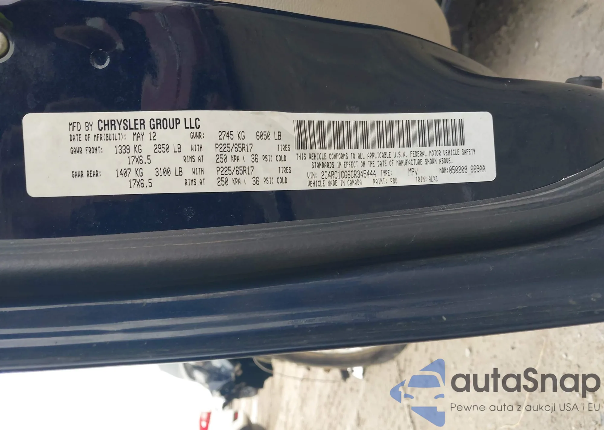 LOT: 41930858 VIN: 2C4RC1CG6CR345444