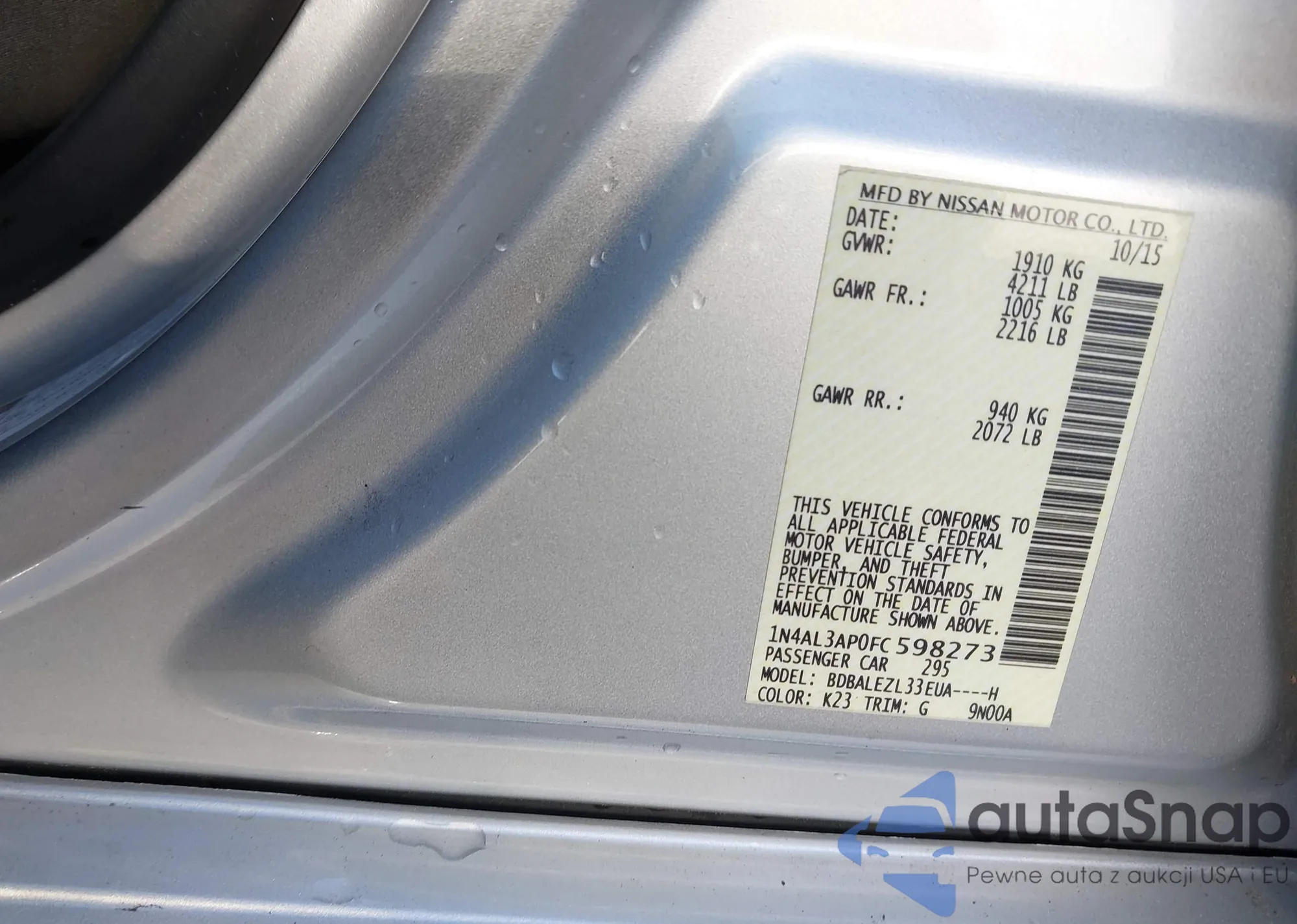 LOT: 42273538 VIN: 1N4AL3AP0FC598273