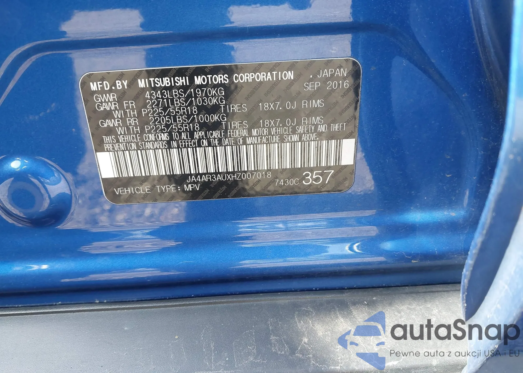 • VIN JA4AR3AUXHZ007018
