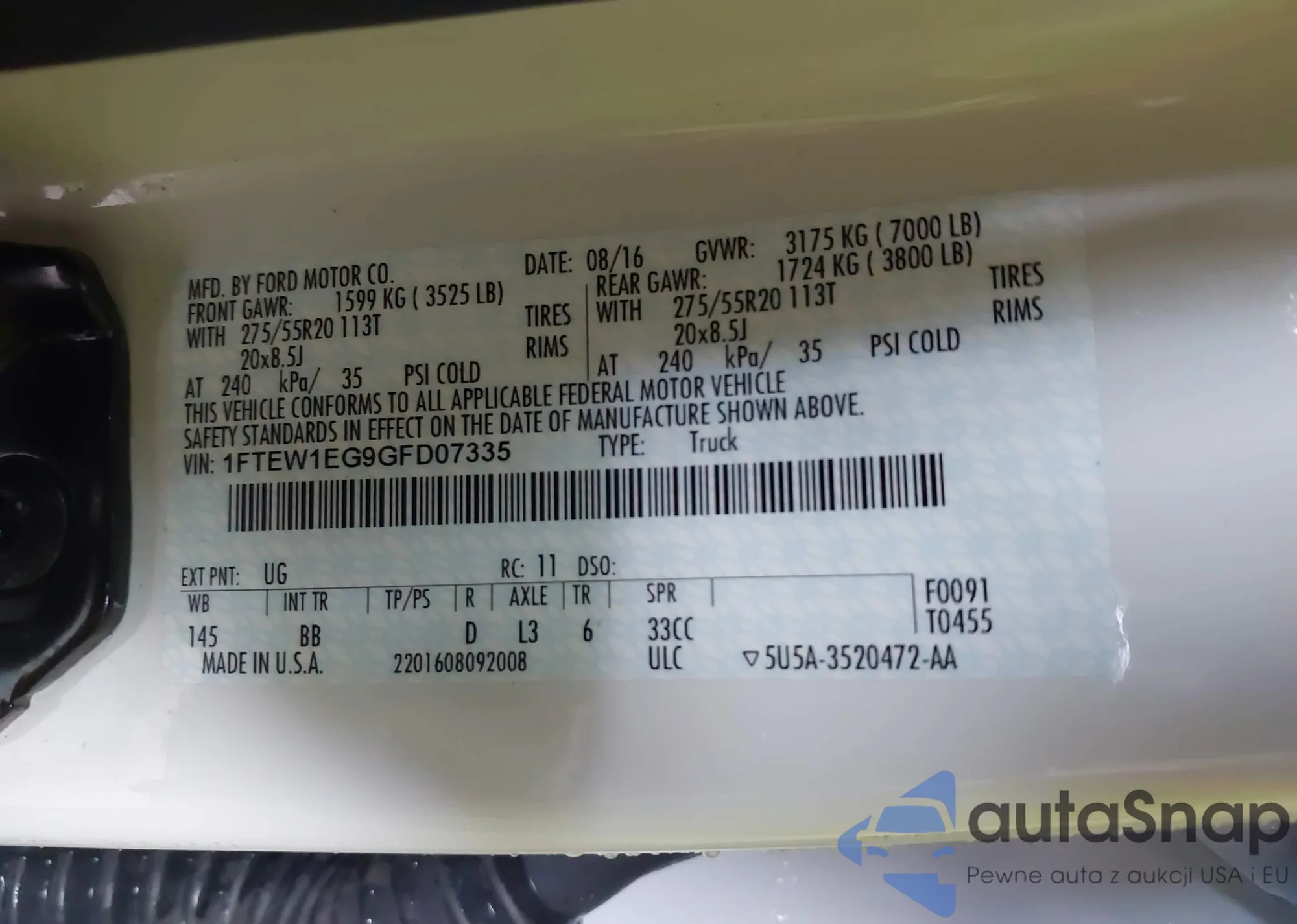 • VIN 1FTEW1EG9GFD07335