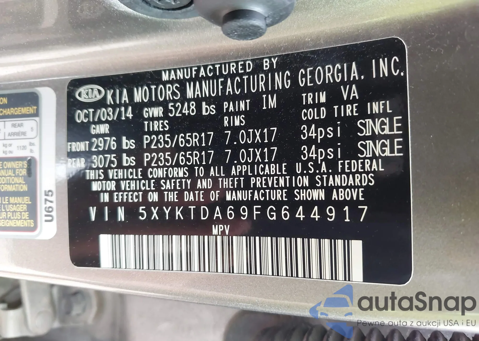 • VIN 5XXGM4A78FG467356