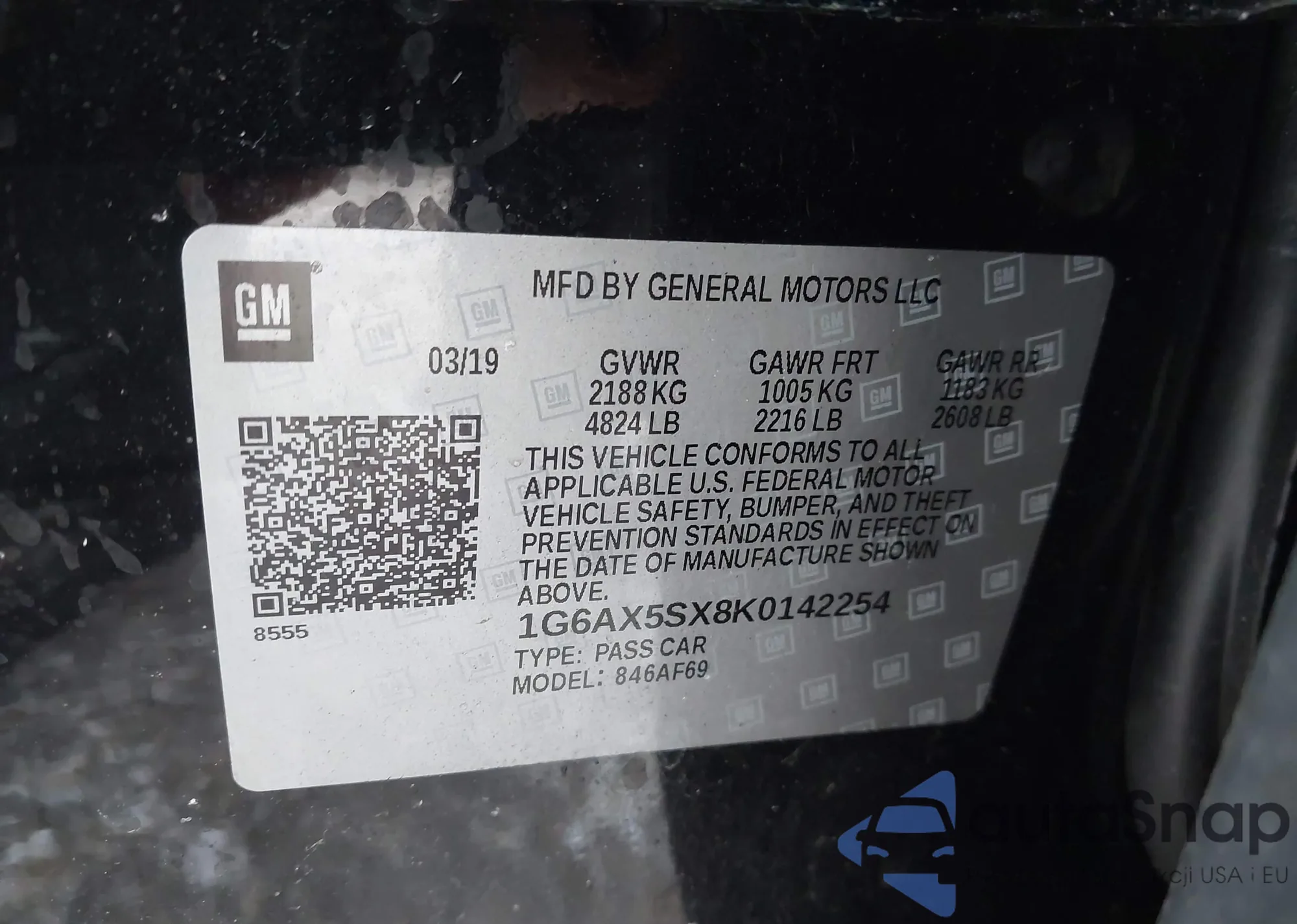 • VIN 1G6AX5SX8K0143601