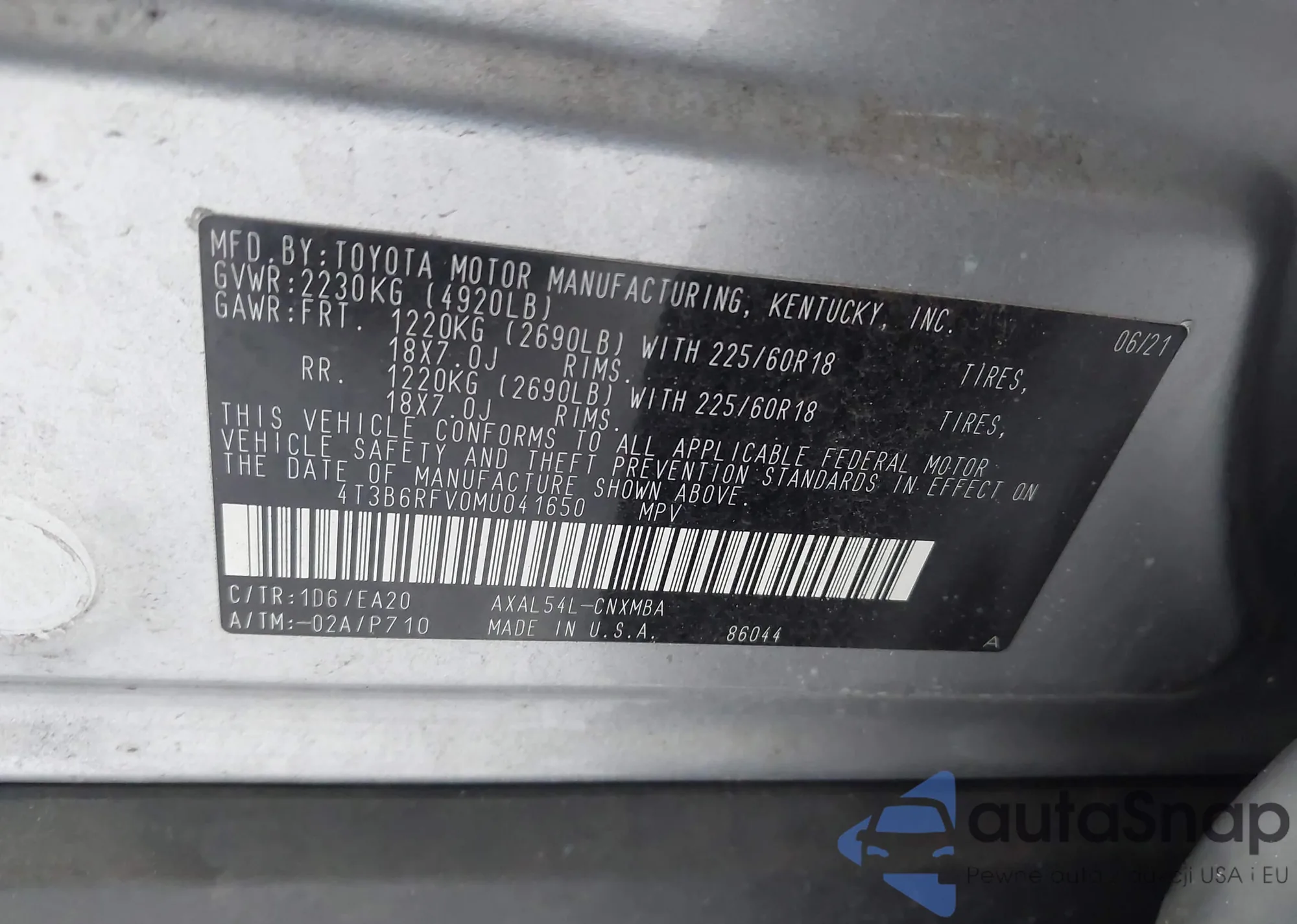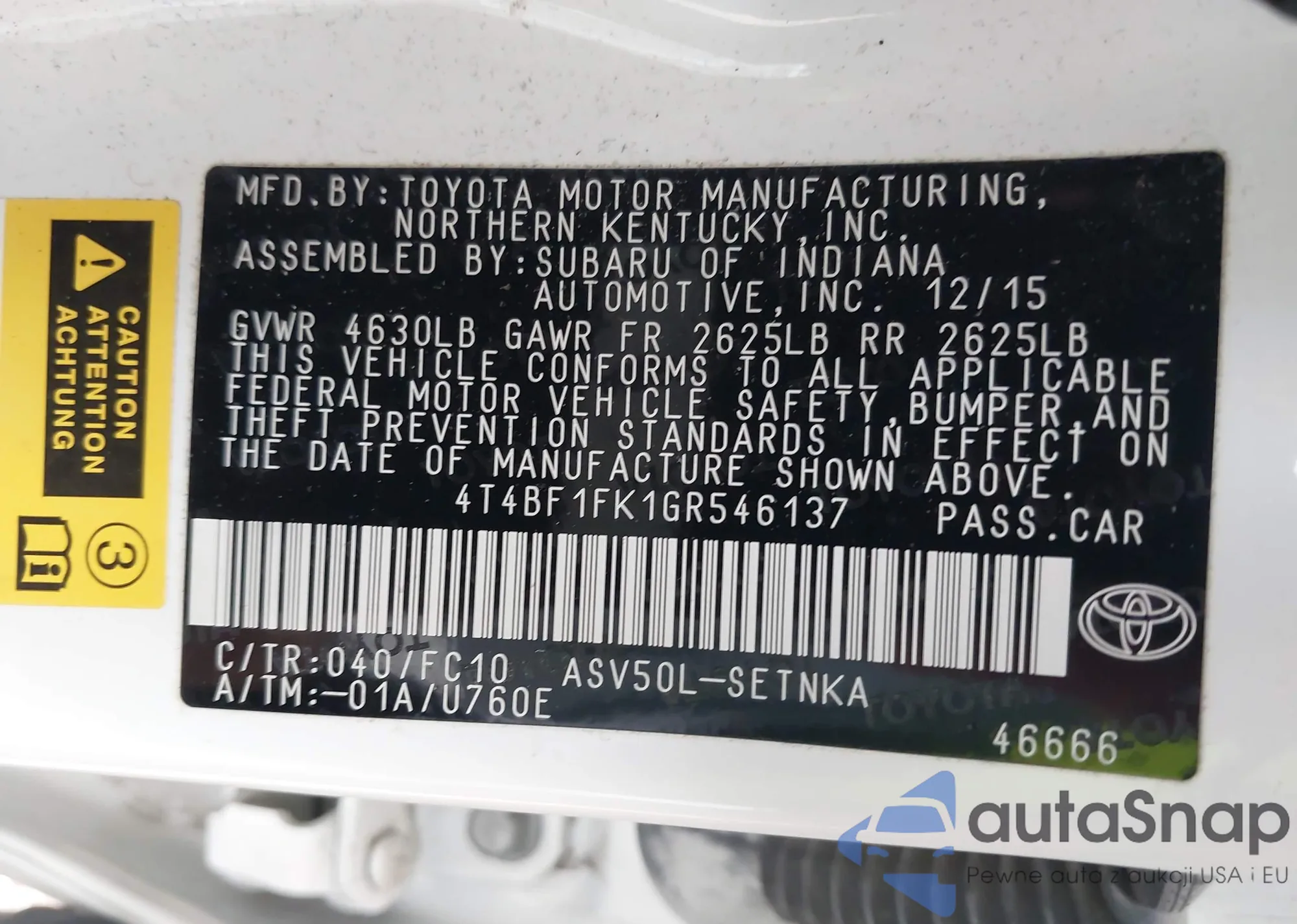 • VIN 4T4BF1FK1GR546137