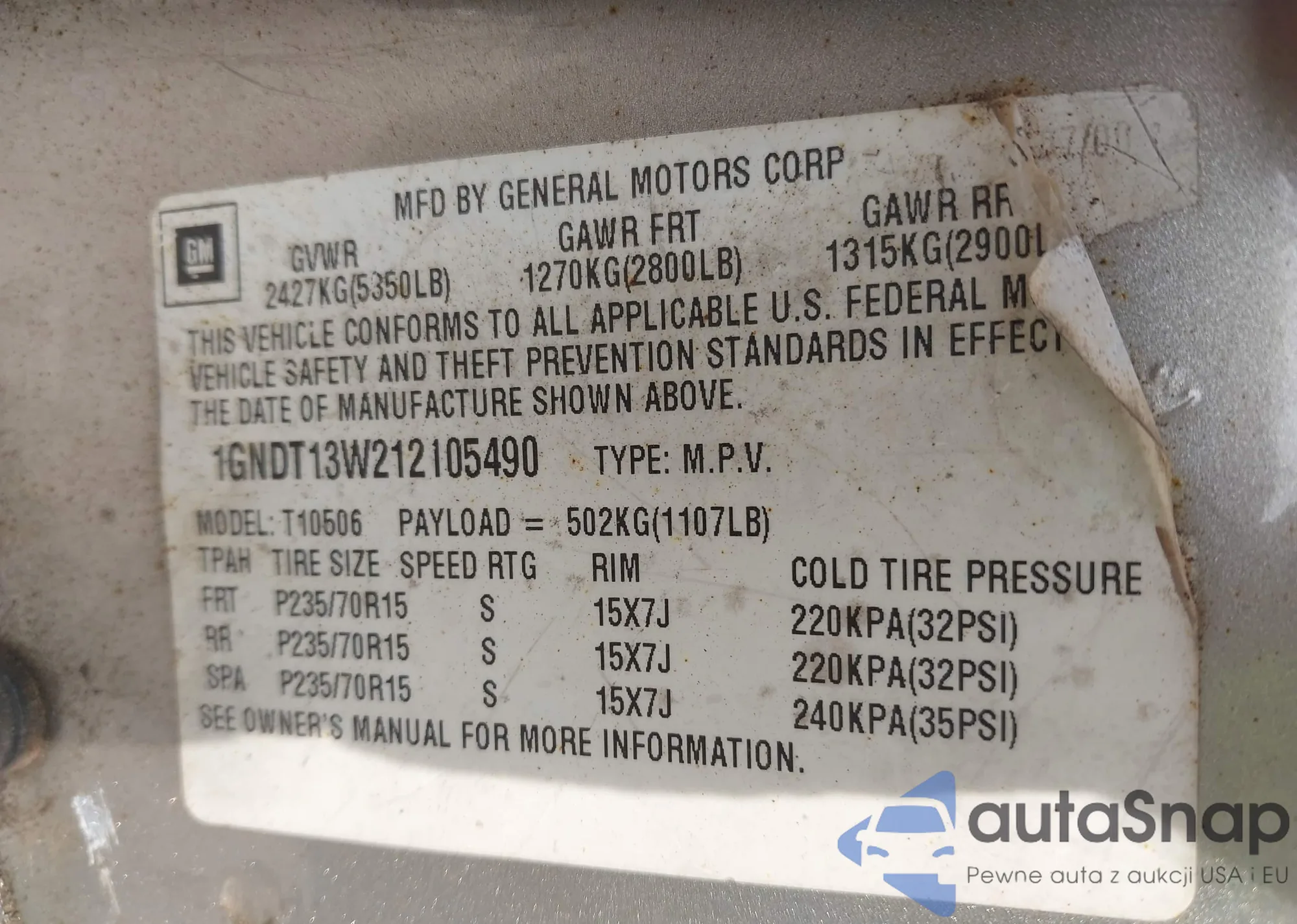 • VIN 1GTEC14R9VZ502715