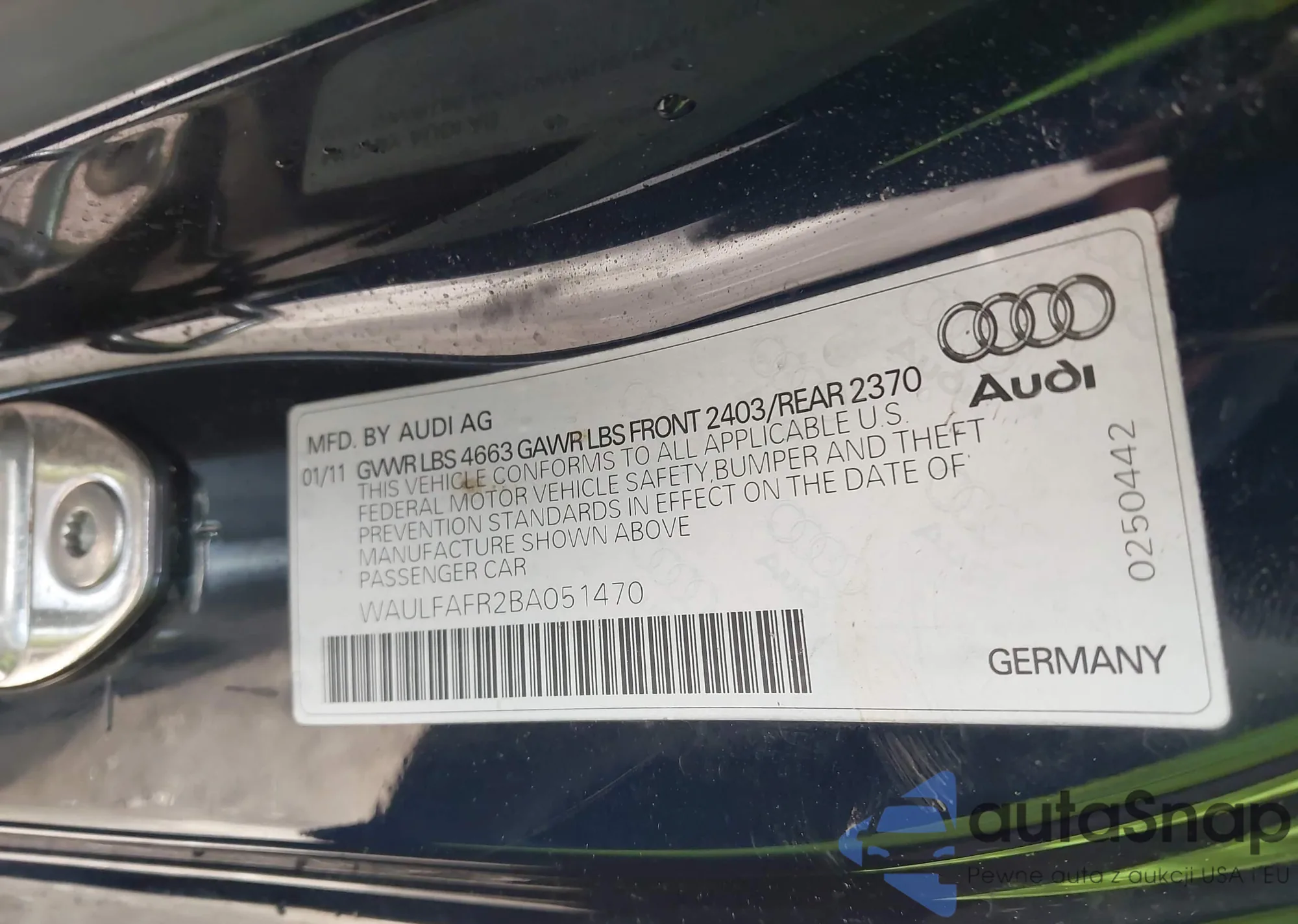 • VIN WAULFAFR2BA051470