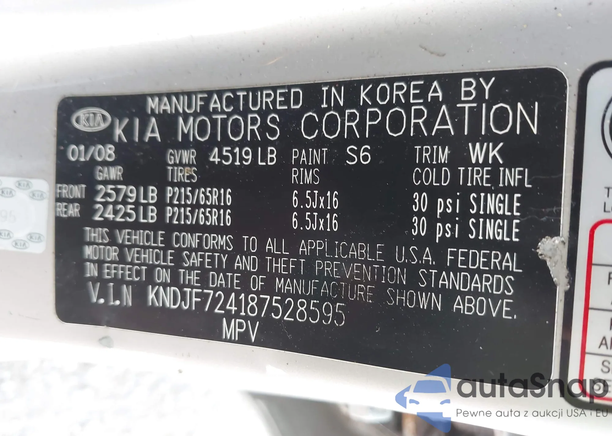 LOT: 42493657 VIN: KNDJF724187528595
