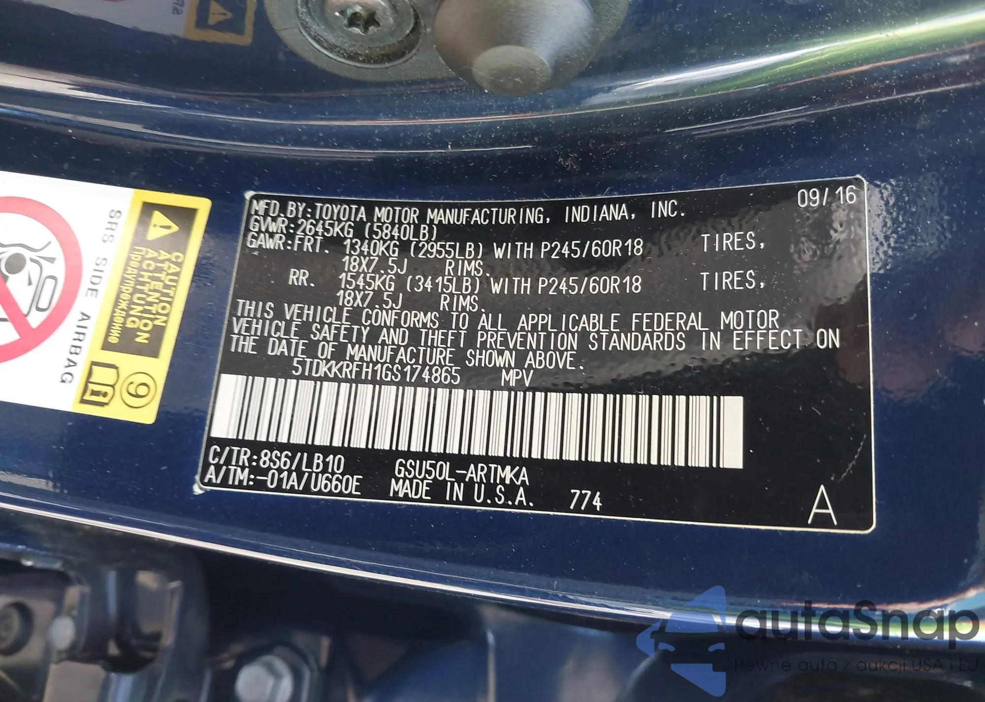 LOT: 42282042 VIN: 5TDKKRFH1GS174865