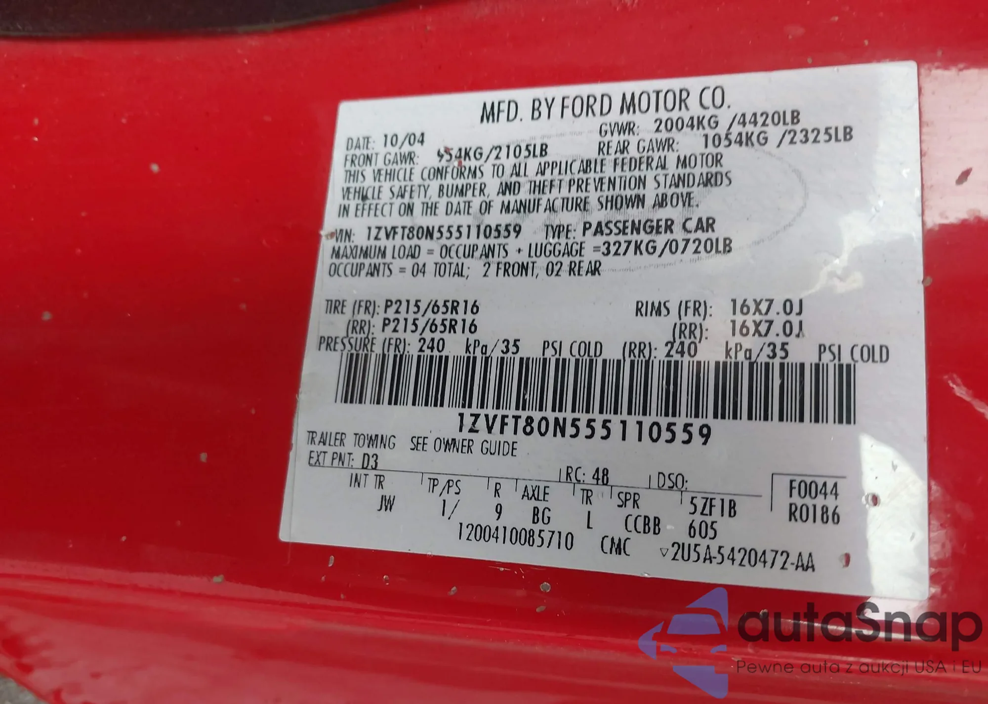 LOT: 42320778 VIN: 1ZVFT80N555110559