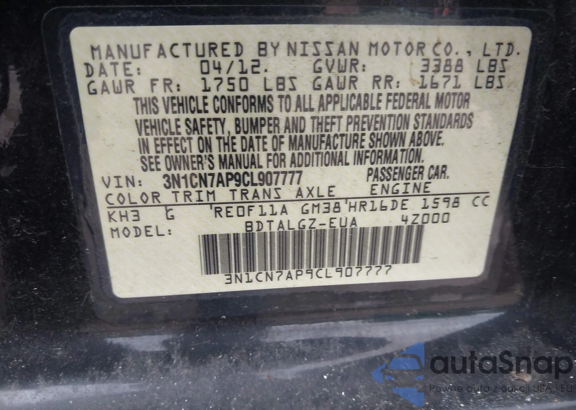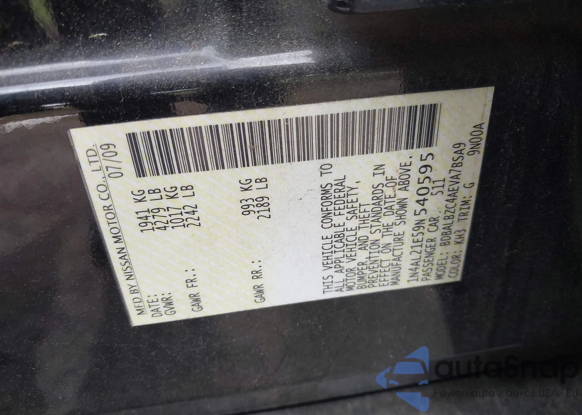 LOT: 42322867 VIN: 1N4AL21E59N540595