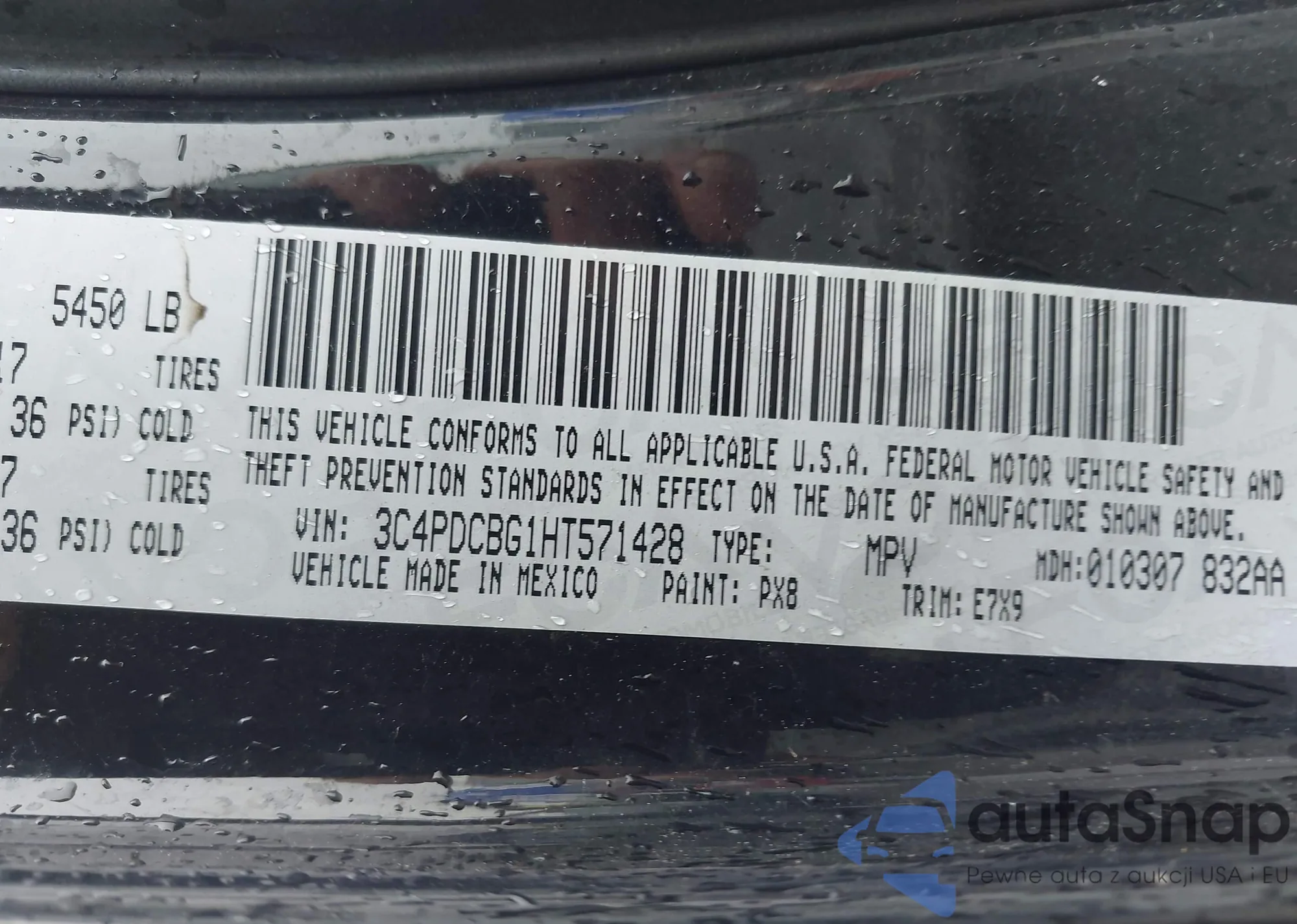 2017 Dodge Journey Sxt from USA, damaged, VIN 3C4PDCBG1HT571428