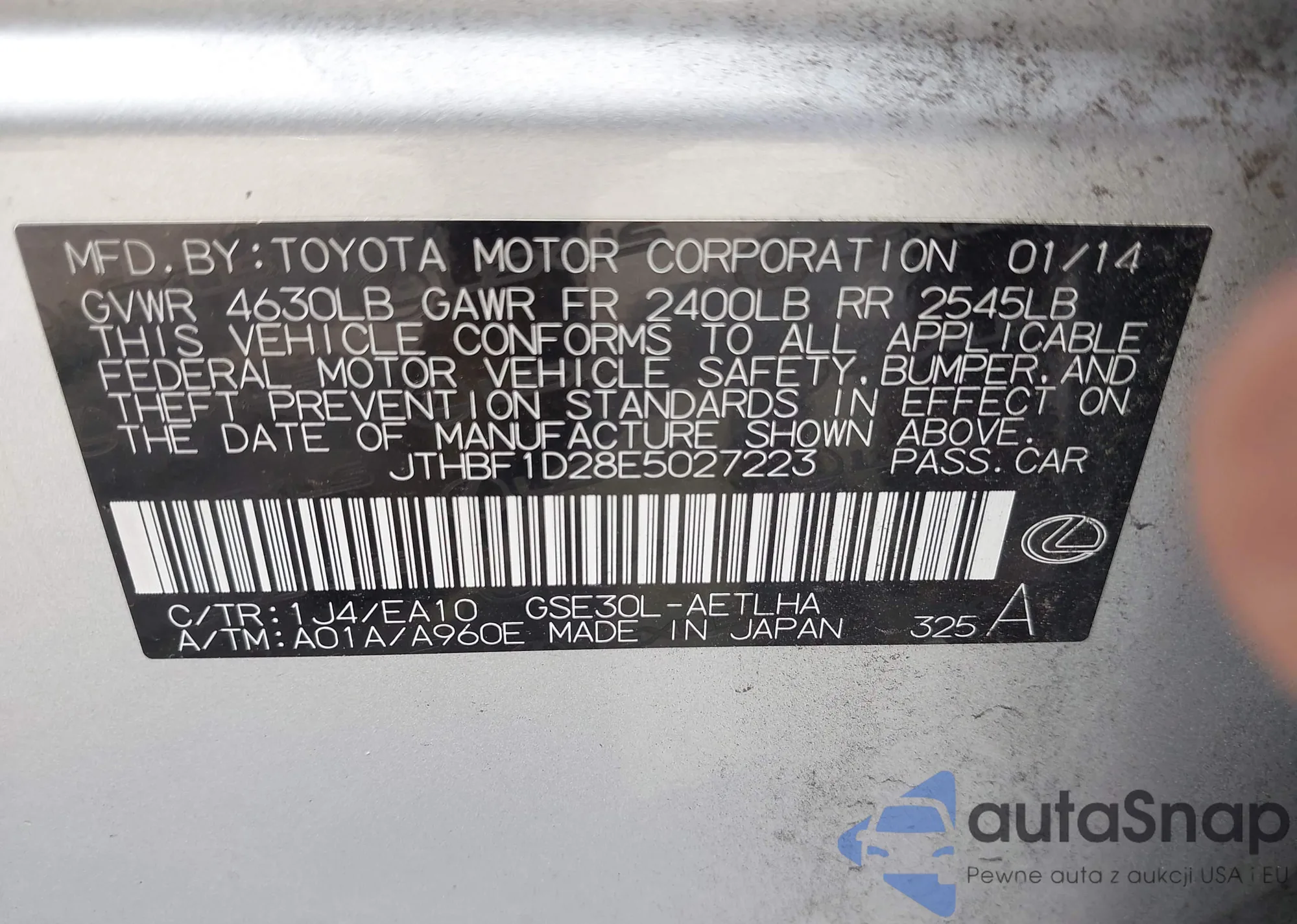 LOT: 41975265 VIN: JTHBF1D28E5027223