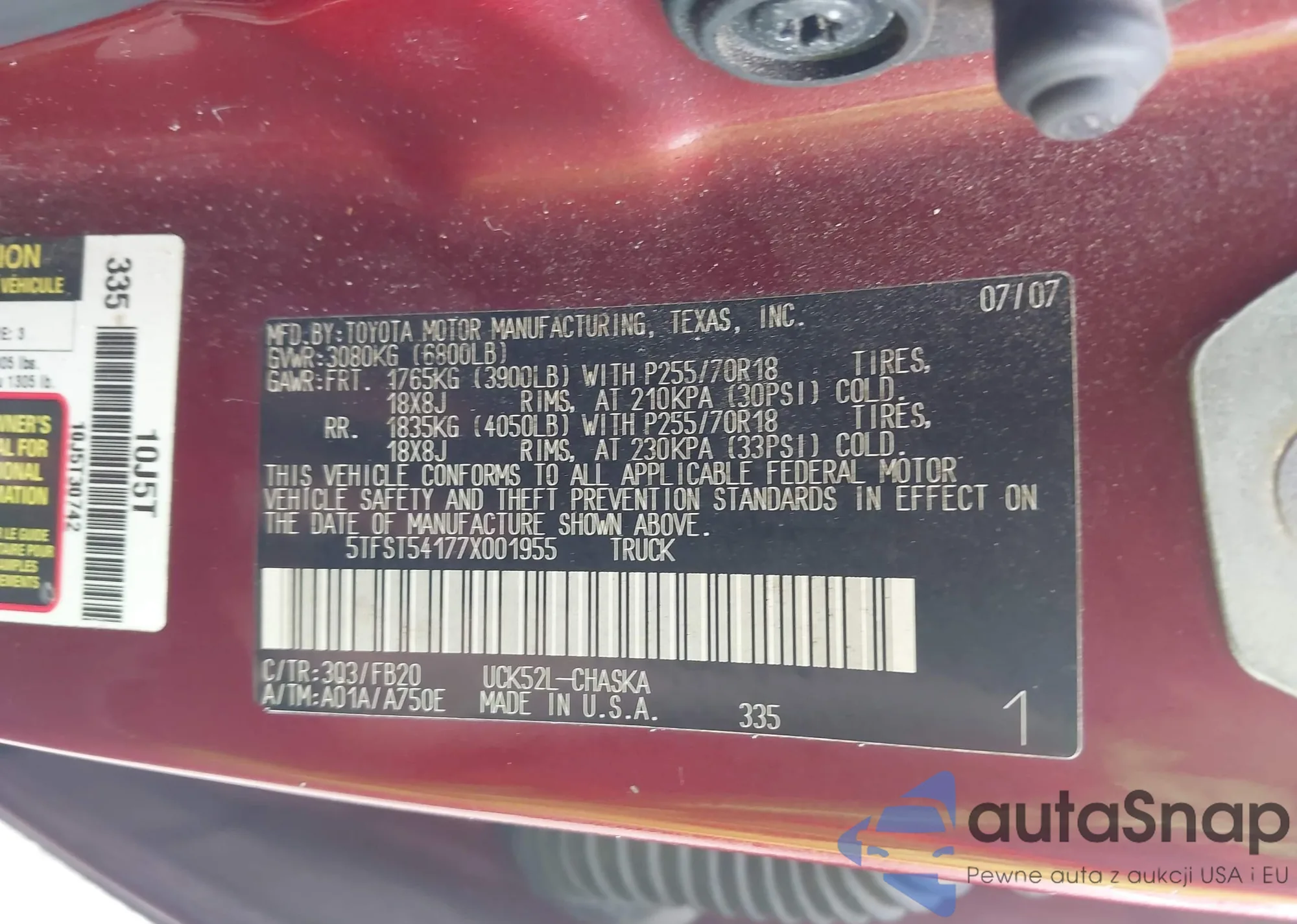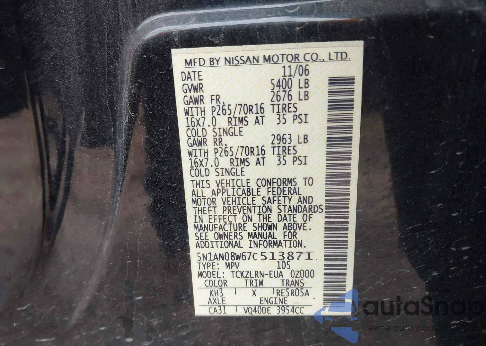 • VIN 5N1AN08W67C513871