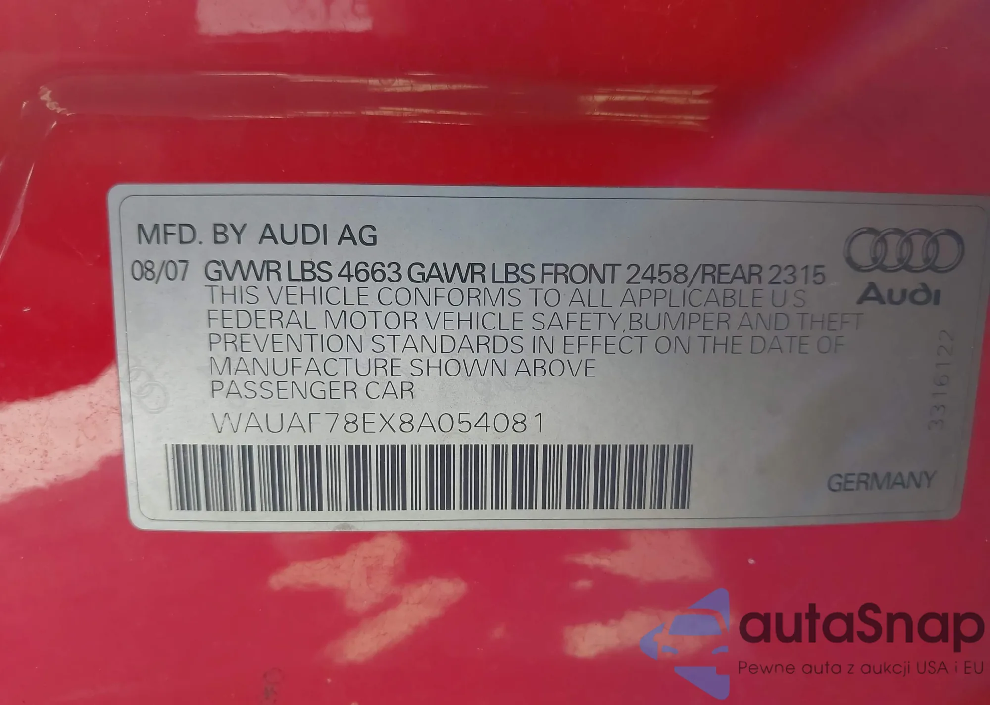 • VIN WAUAF78EX8A054081