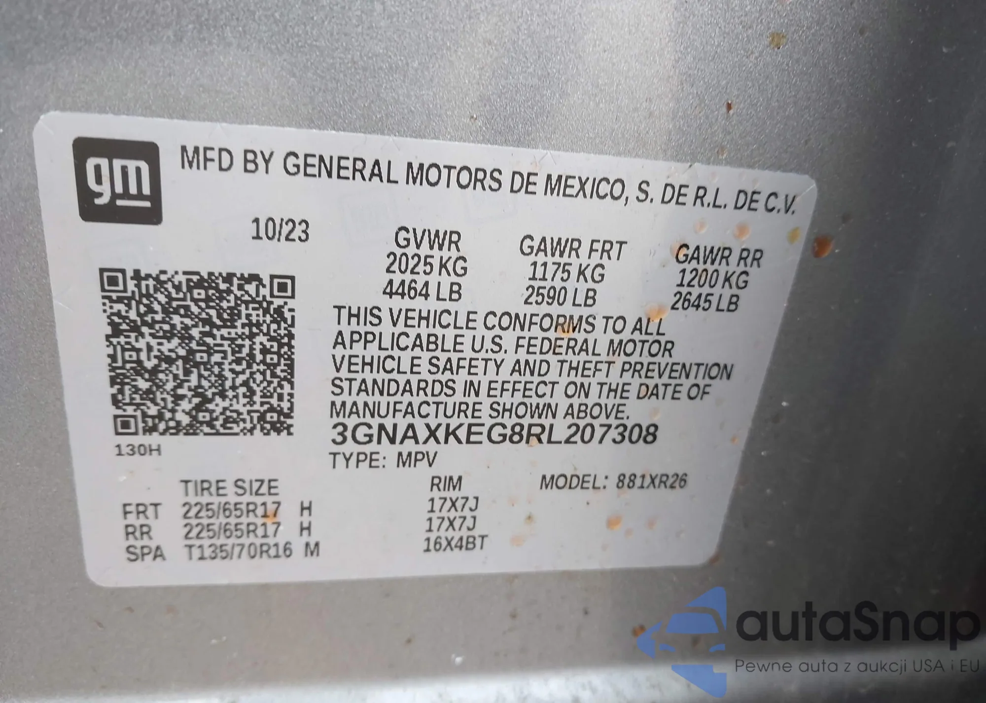 • VIN 3GNAXKEG8RL207308