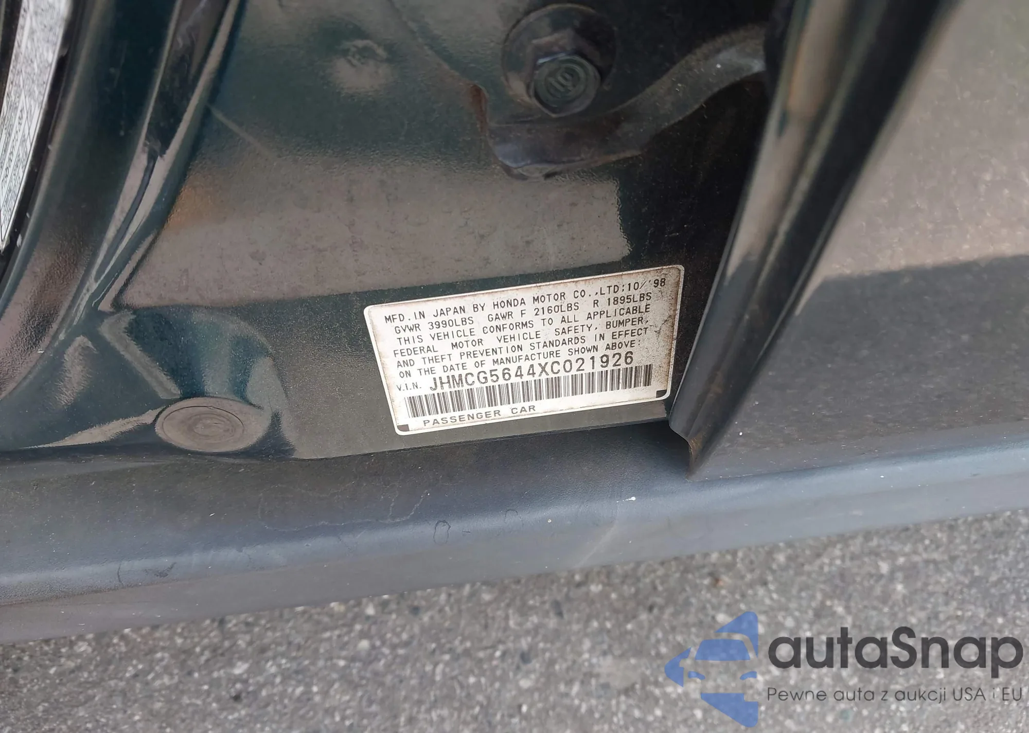 • VIN JHMCG5644XC021926