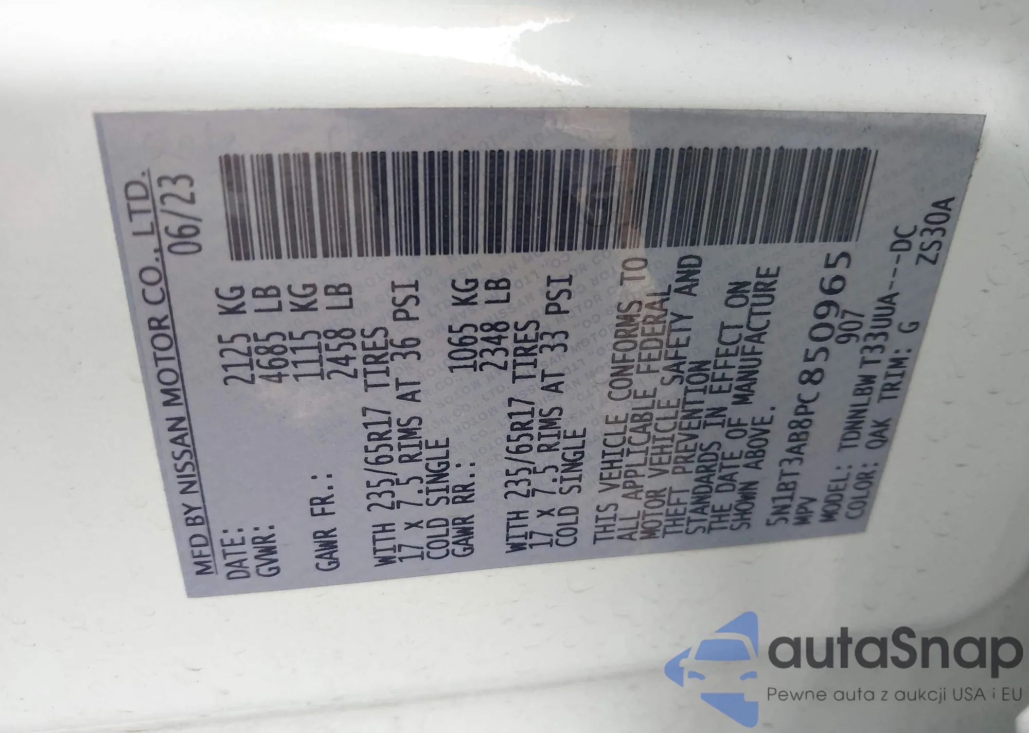• VIN JN8AS1MW9AM851036