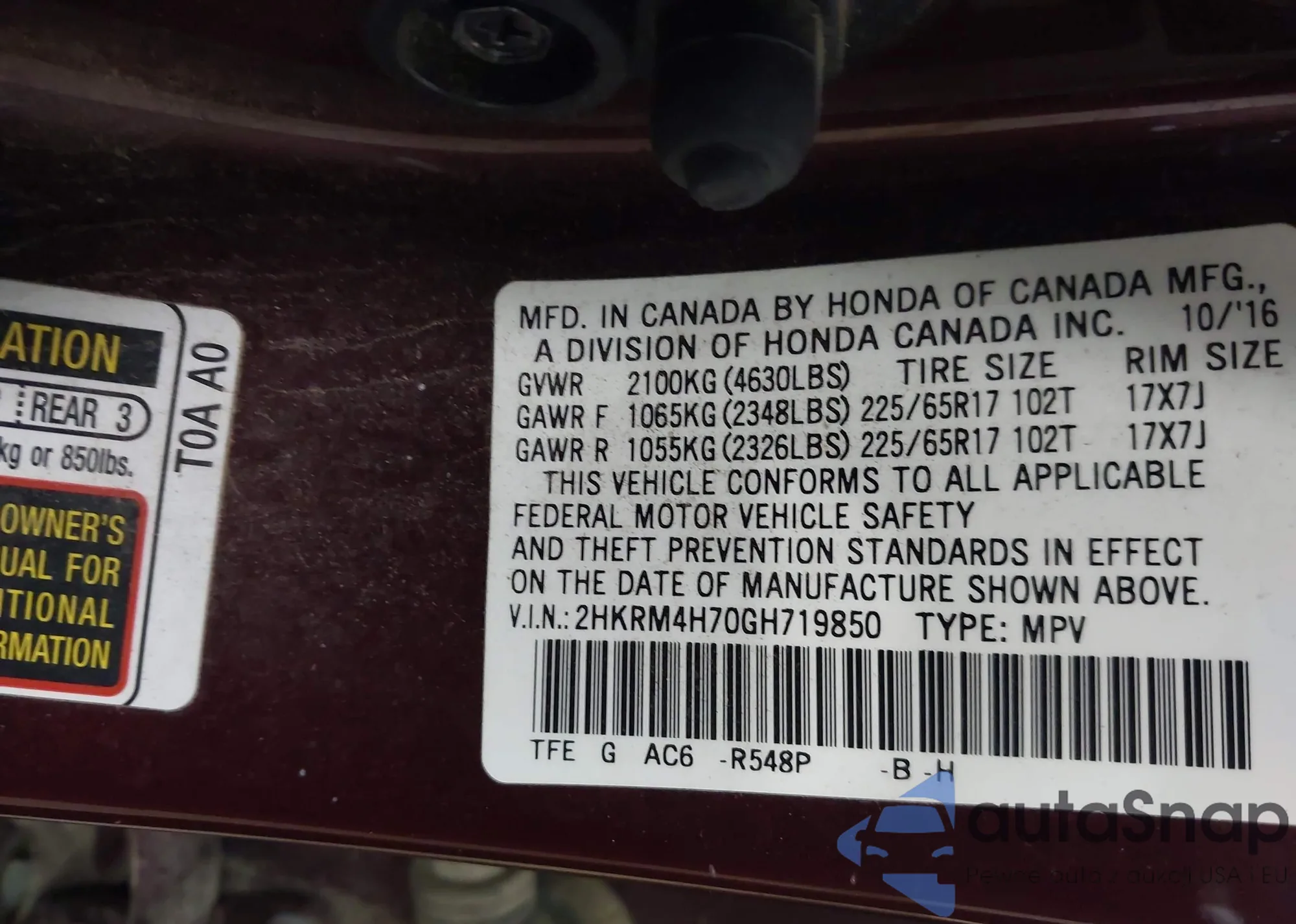 • VIN 2HKRM4H70GH719850