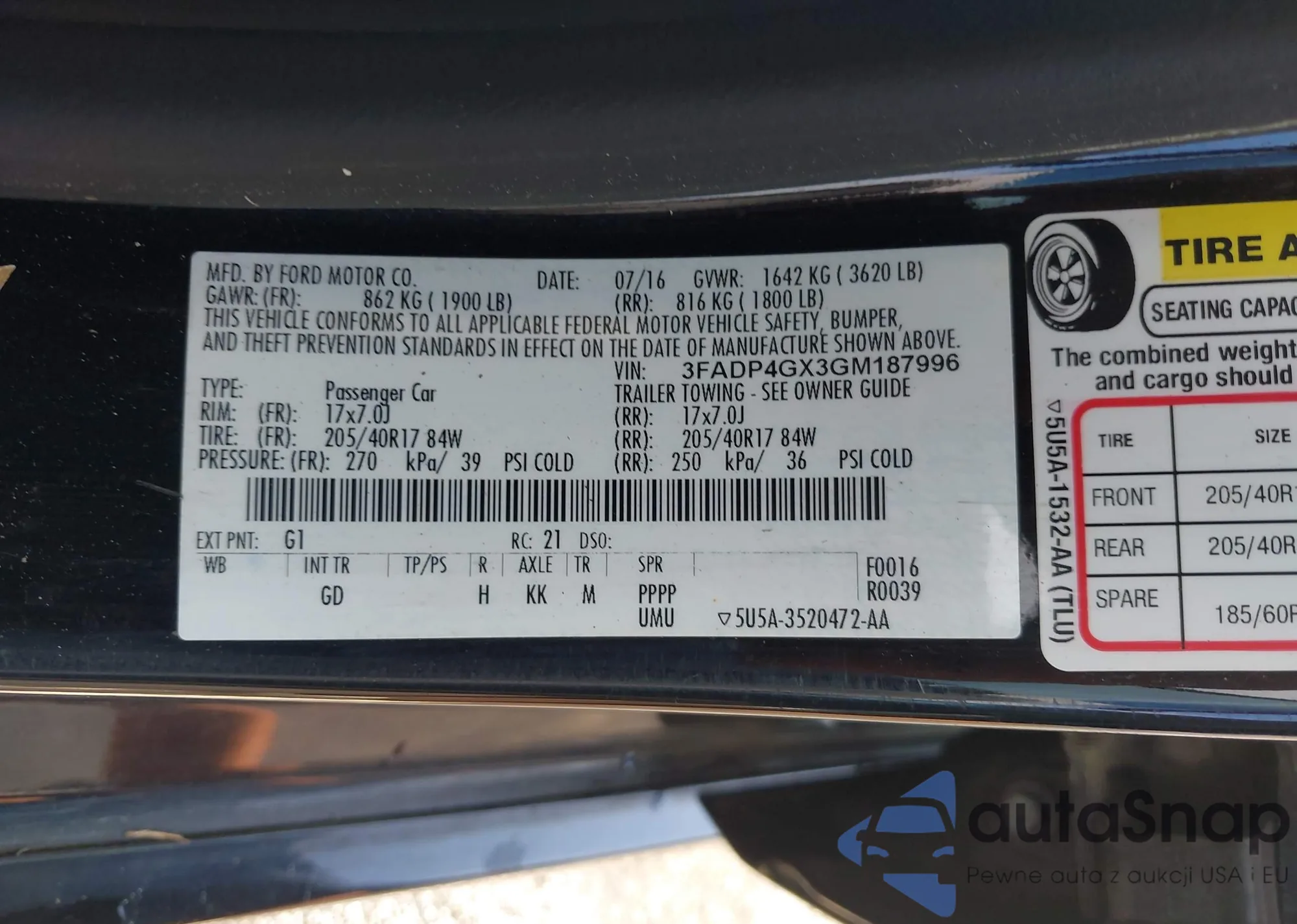 • VIN 1FA6P8CF0R5430394