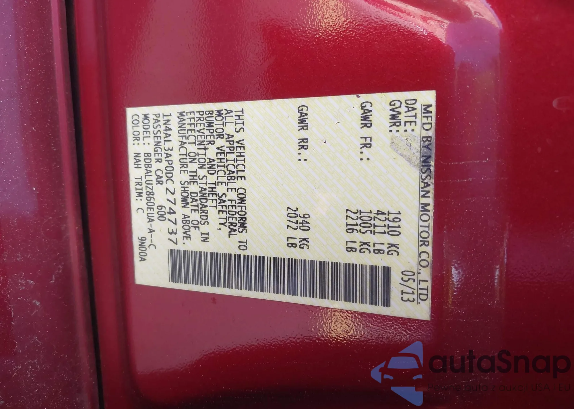 LOT: 42315872 VIN: 1N4AL3AP0DC274737