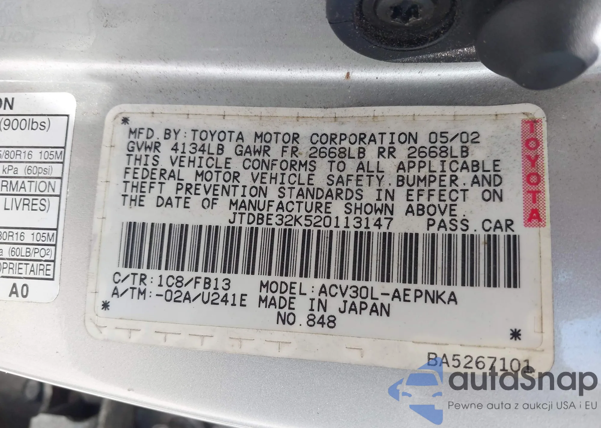 LOT: 42350611 VIN: JTDBE32K520113147