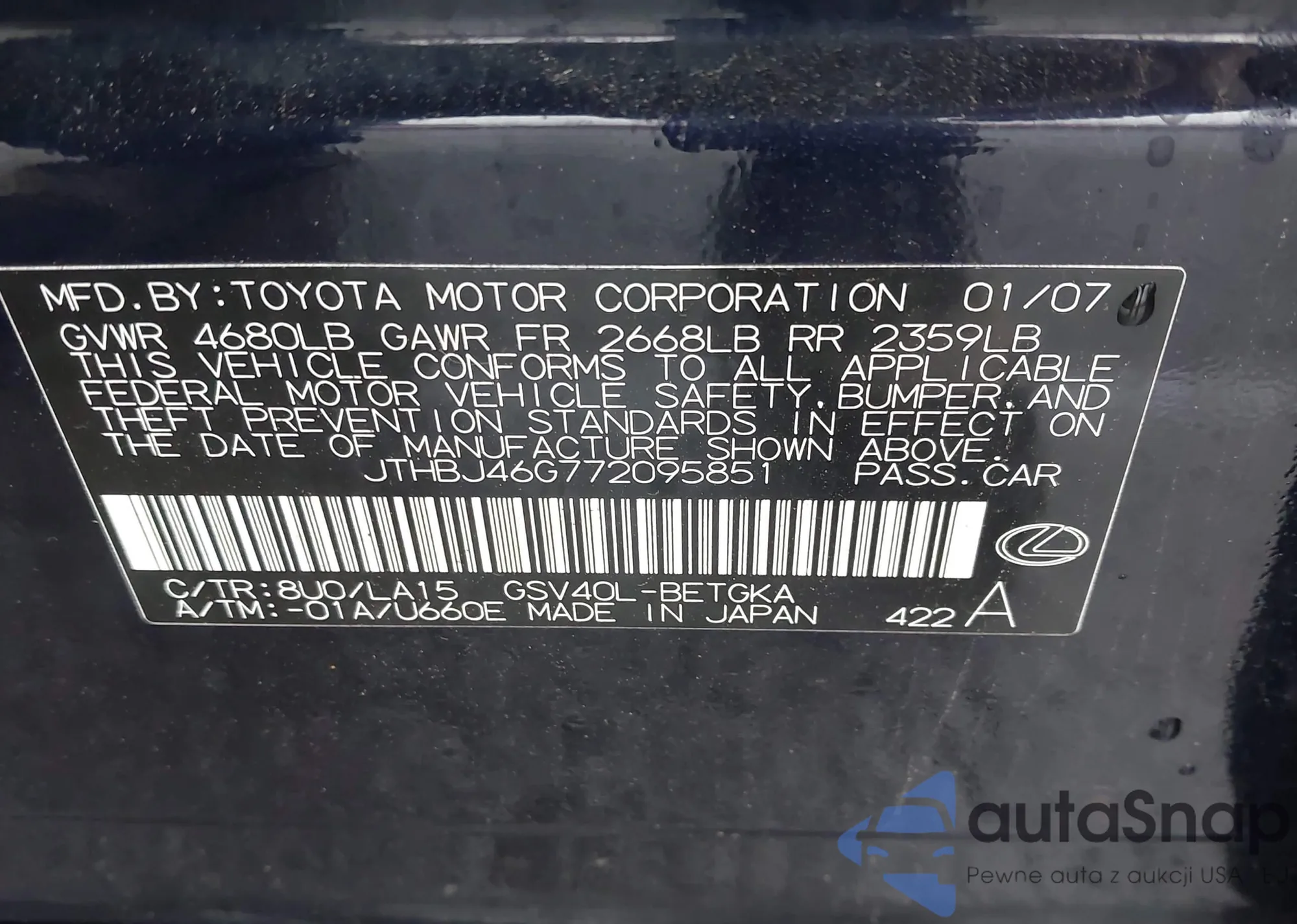 LOT: 42107347 VIN: JTDEAMDE1NJ046633