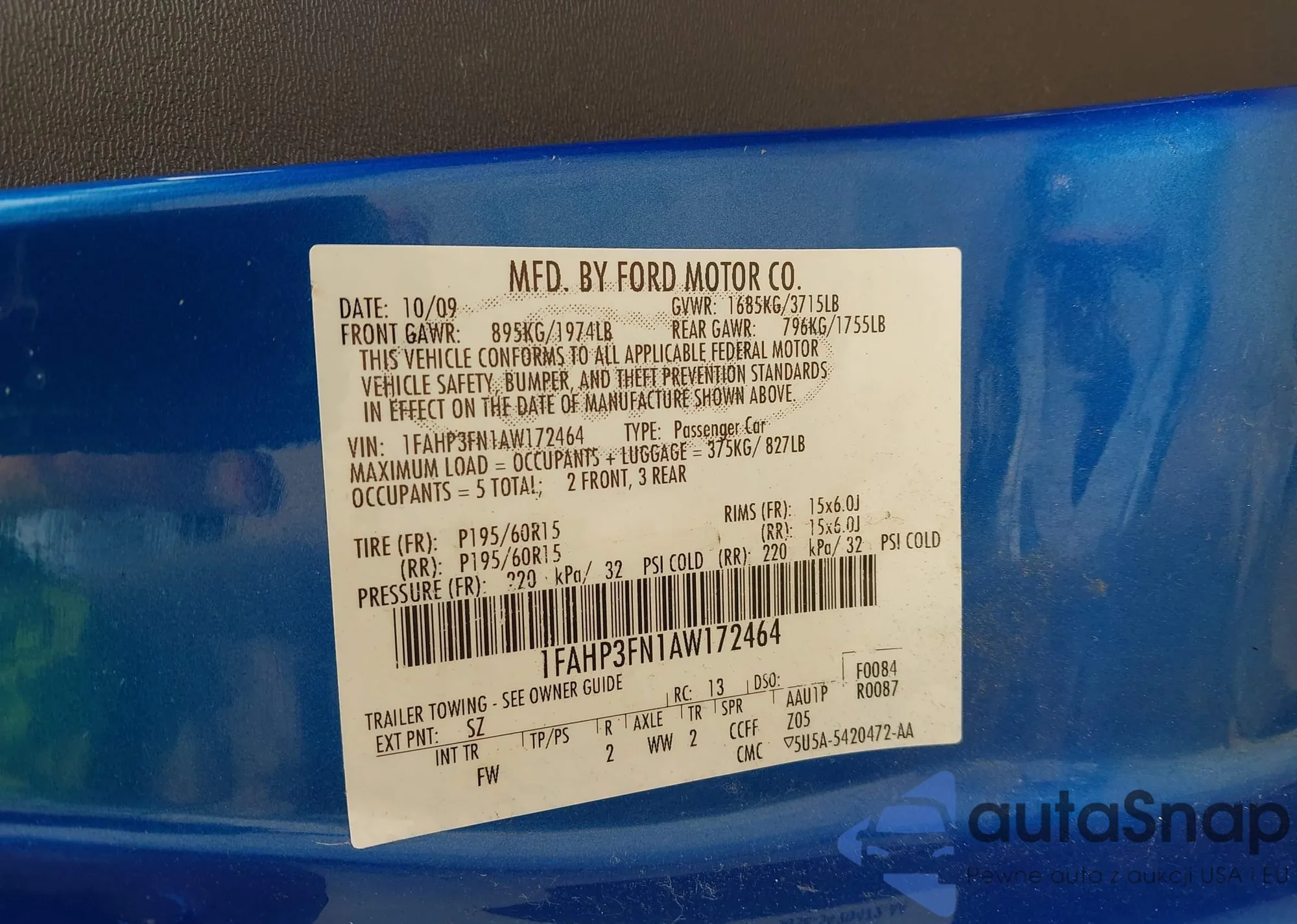 • VIN 1FAHP3FN1AW172464