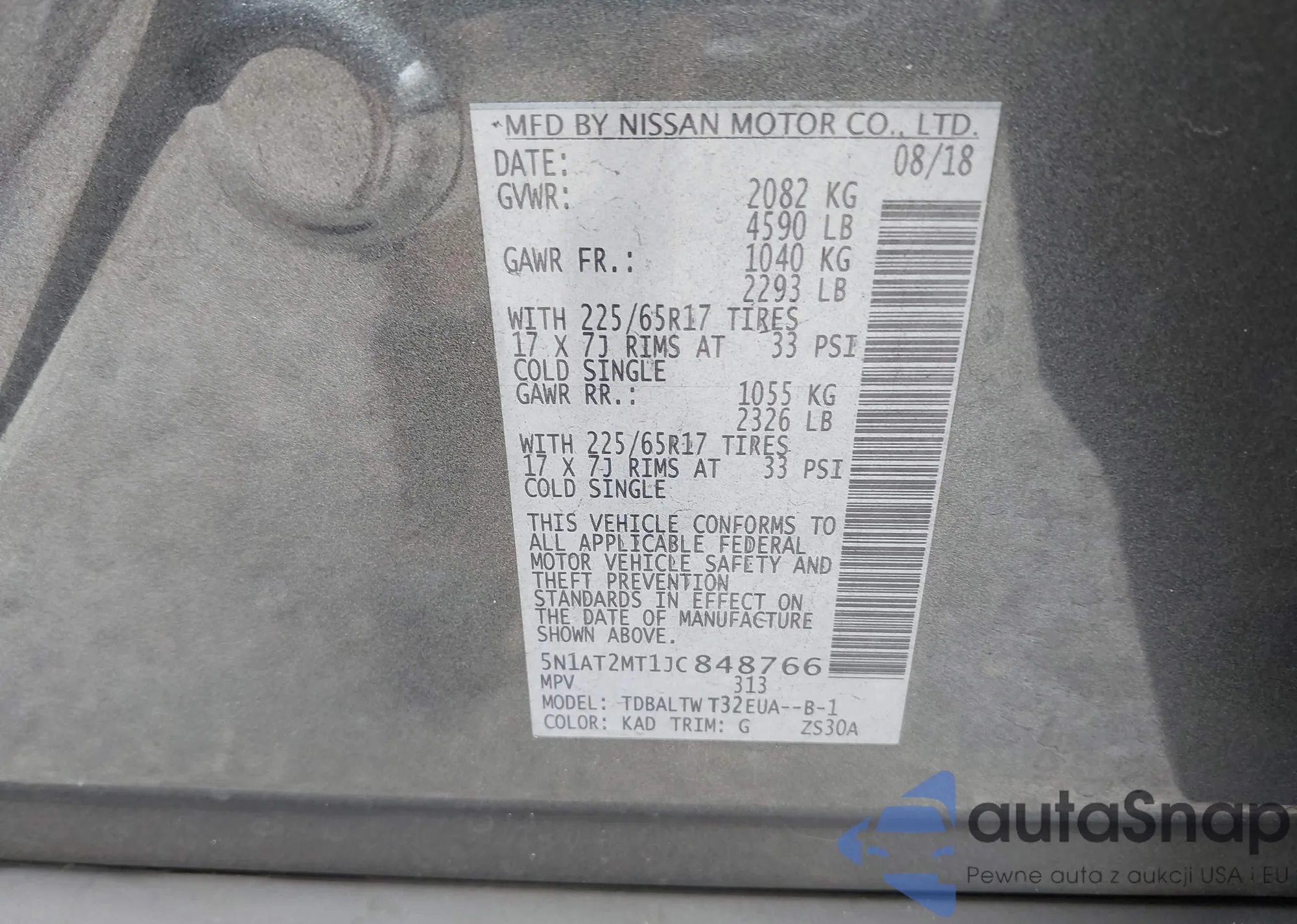 LOT: 42404868 VIN: 5N1AT2MT1JC848766