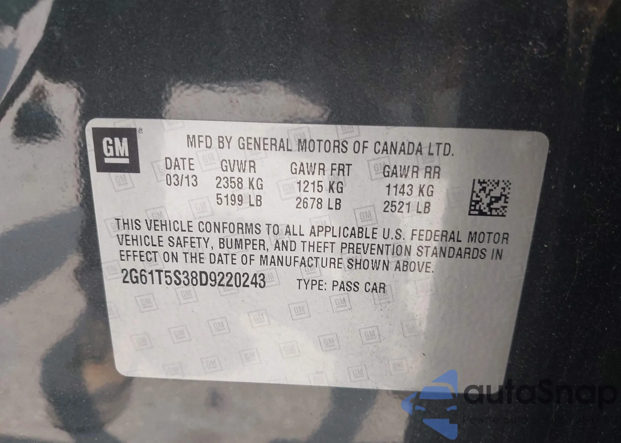 • VIN 2G61T5S38D9220243