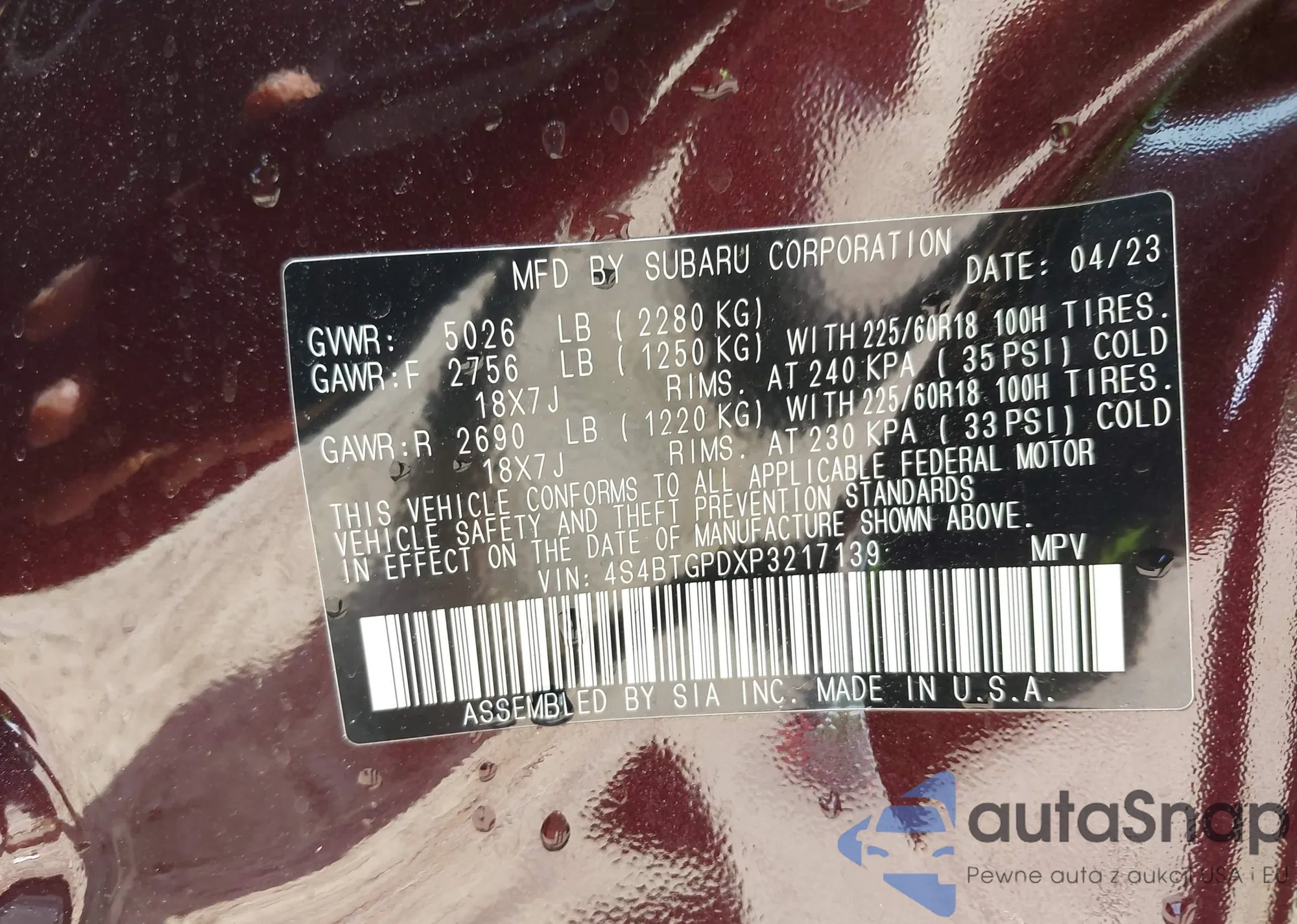 • VIN 4S4BTGPDXP3217139