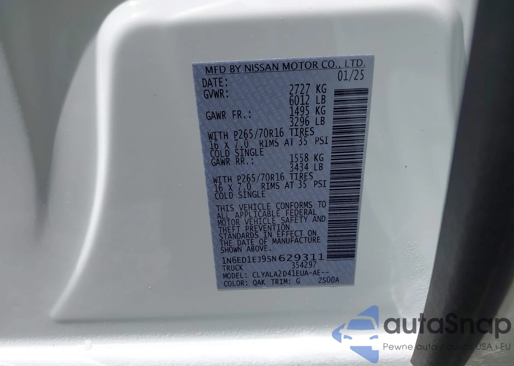 • VIN 1N6ED1EJ9SN629311
