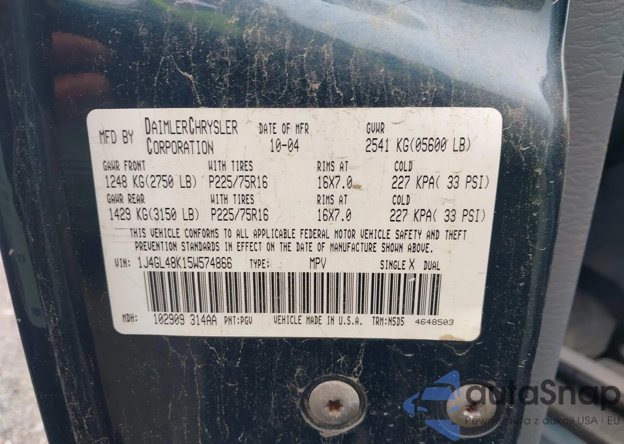 LOT: 42211672 VIN: 1J4GL48K15W574866