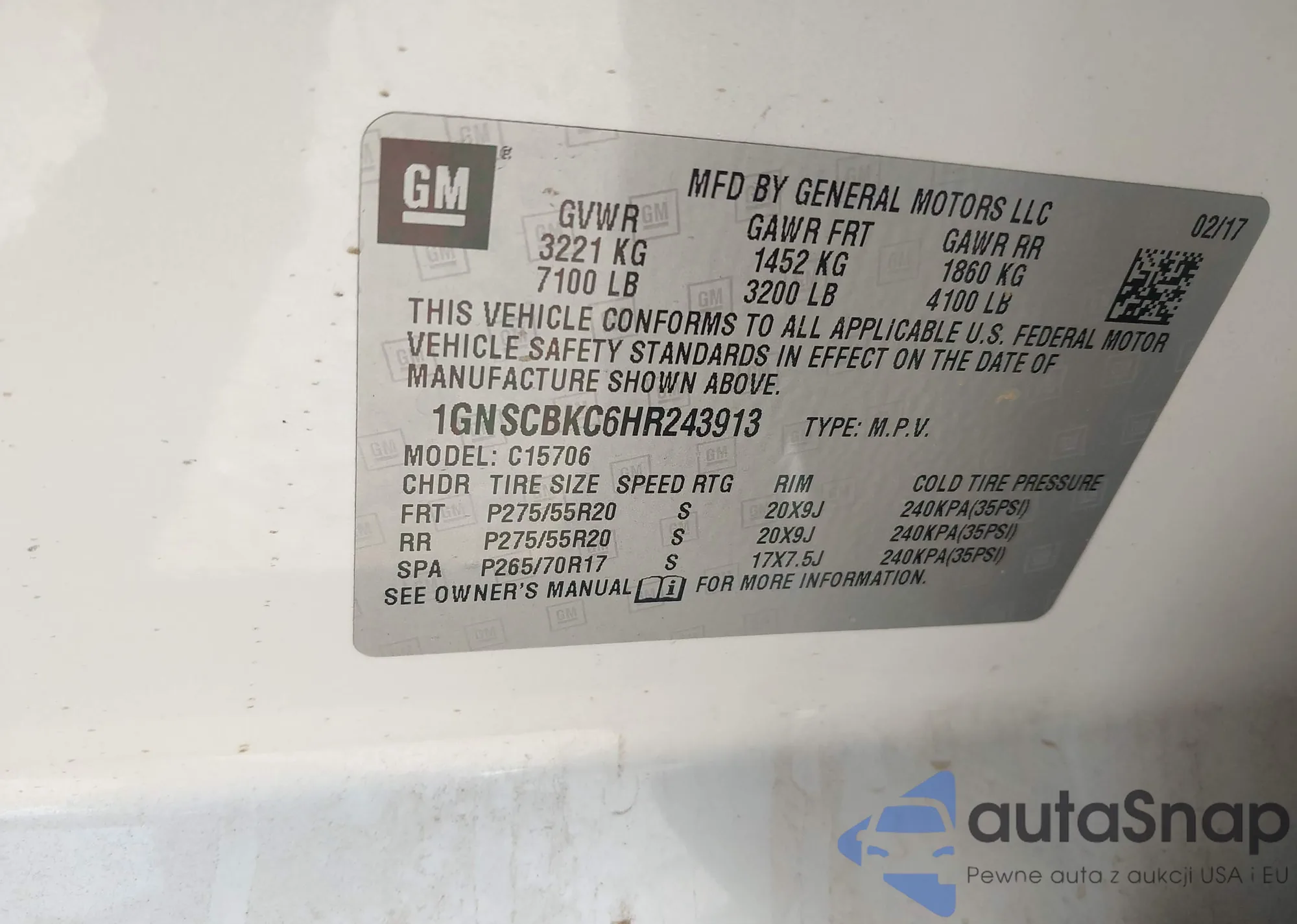• VIN 1GNSCBKC6HR243913