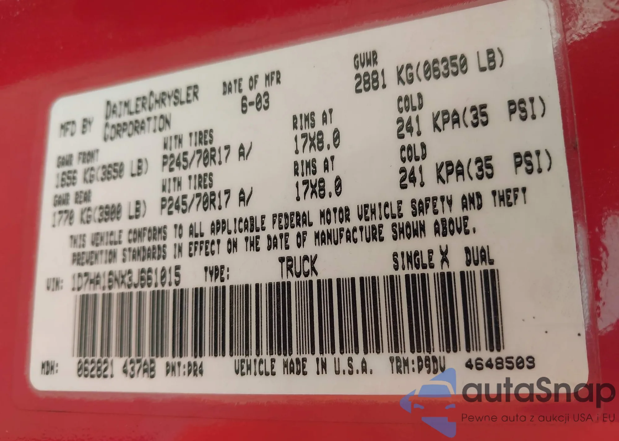 • VIN 1D7HA16NX3J661015