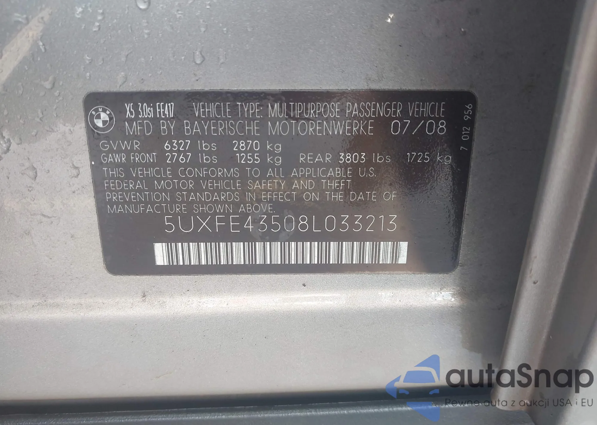 LOT: 42367707 VIN: 5UXFE43508L033213