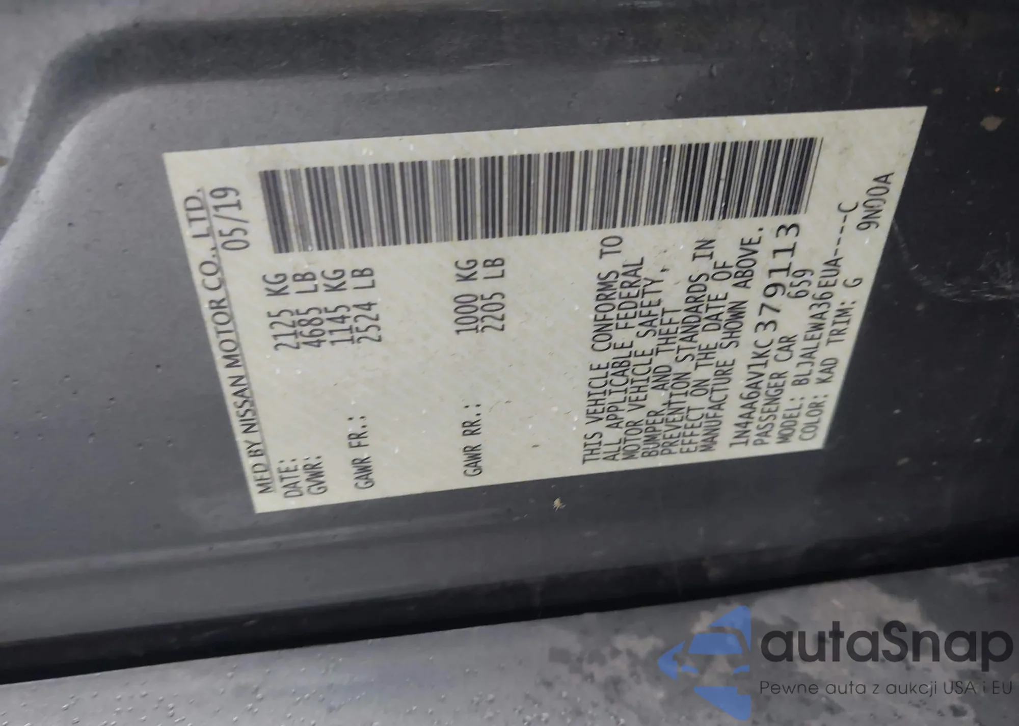 • VIN 1N4AA6AVIKC379113