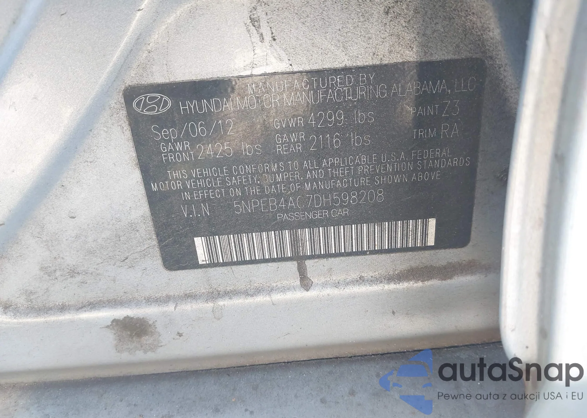 • VIN 5NPEB4AC7DH598208