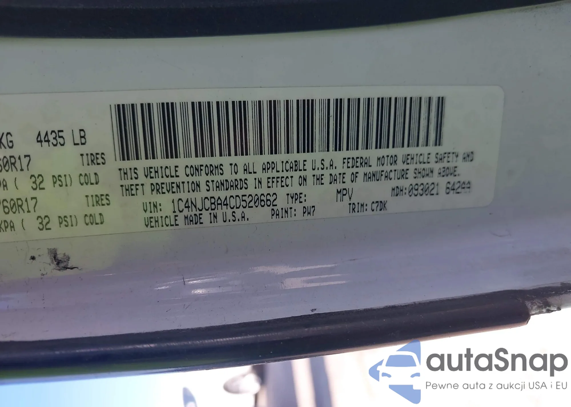 LOT: 42521114 VIN: 1C4NJCBA4CD520662