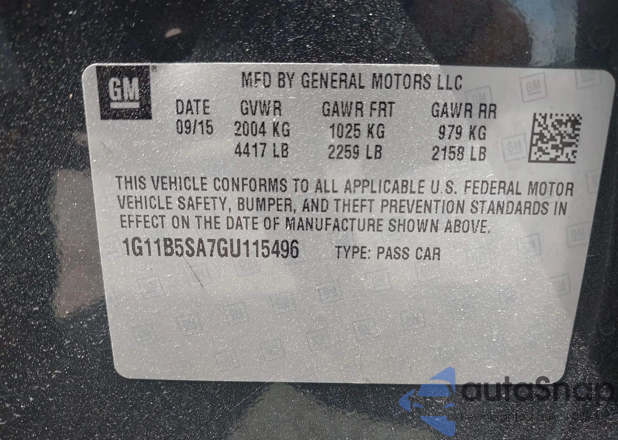 LOT: 42306788 VIN: 1G11B5SA7GU115496