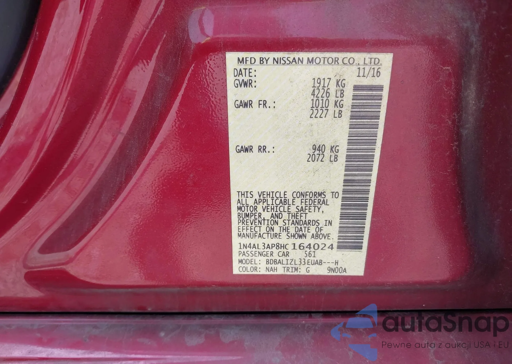 • VIN 1N4BL3AP9DN428807