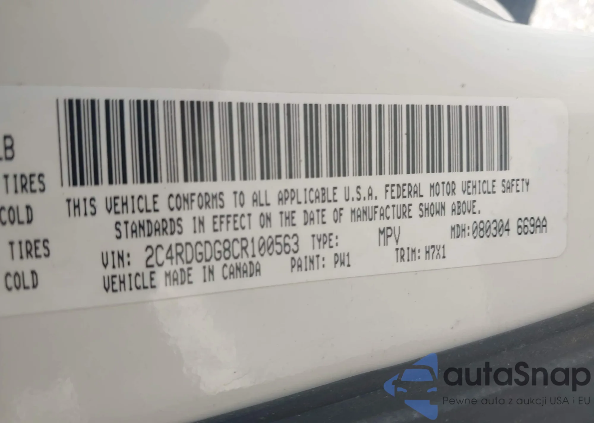 • VIN 2C4RDGDG8CR100563