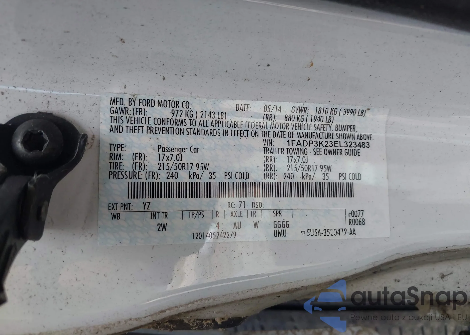 LOT: 42293726 VIN: 1FADP3K23EL323483