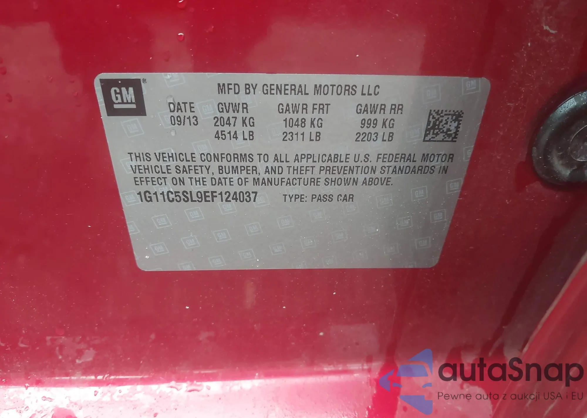 LOT: 42490627 VIN: 1G11C5SL9EF124037