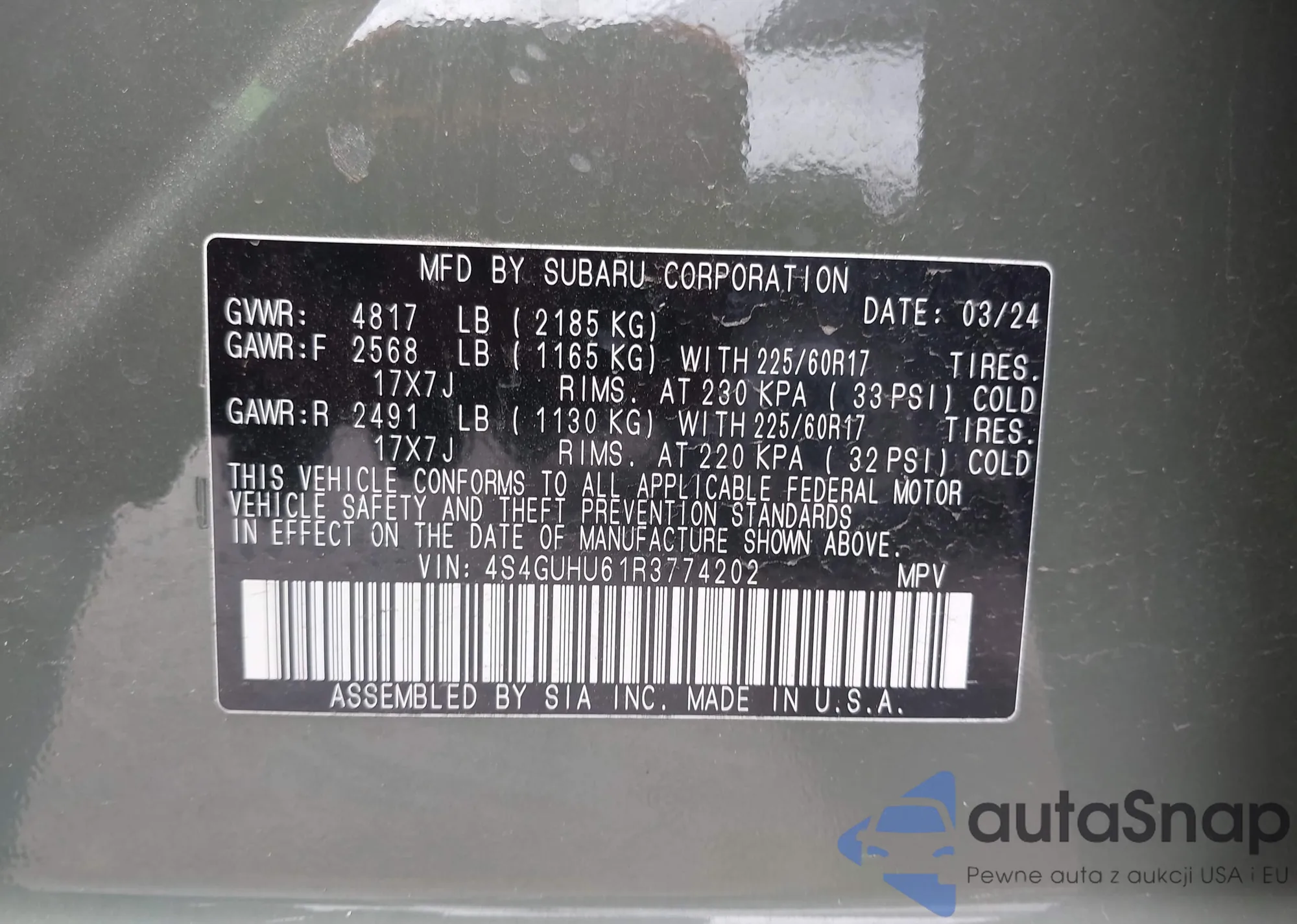 • VIN 4S4GUHU61R3774202