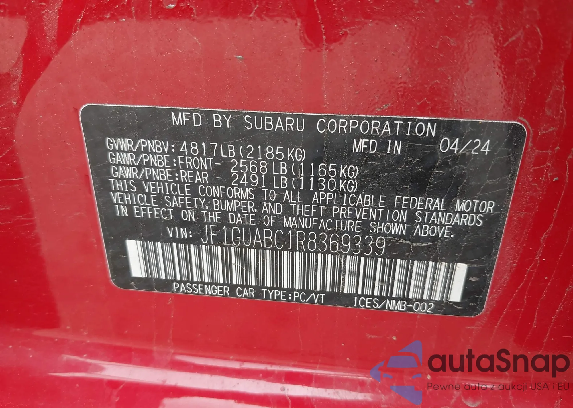 LOT: 42358023 VIN: JF1GUABC1R8369339
